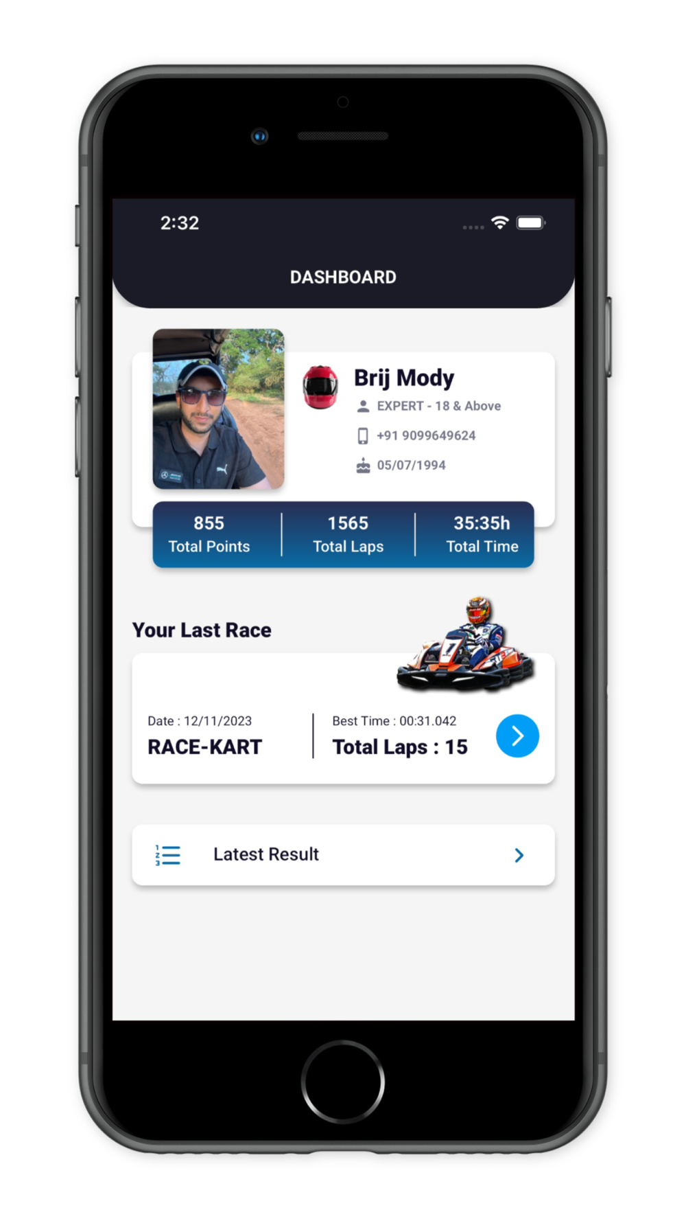 - Accumulated dashboard for Total Points, Total Laps and Total Time.