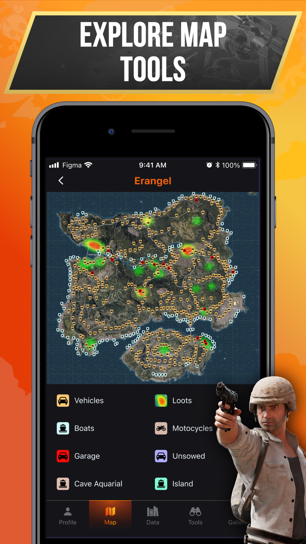 Stats, Hacks & Maps for PUBG is the best application that will help you to become a pro gamer! Learn new dances and emotes, compare different weapons, get maps with all loot locations, and access all statistics for all gaming platforms by usernames. You can greatly raise your level and even enhance your game skills by keeping track of gaming data, which will also let you show off to your friends.