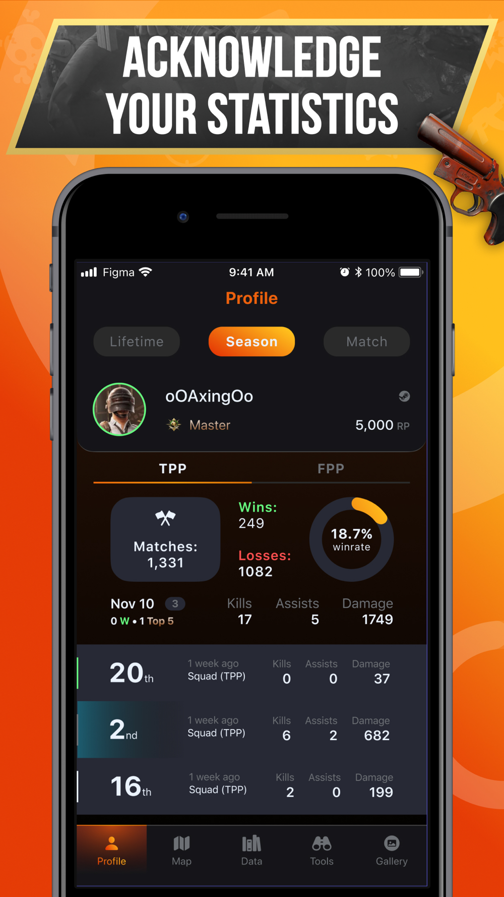 All the information you require regarding statistics for the current season as well as for matches is available in this application. There's more, though! Several cool features like information on different kinds of weapons, attachments, consumables, and equipment will be available to you, making your game much more fascinating. This application also includes information about the damage calculator.