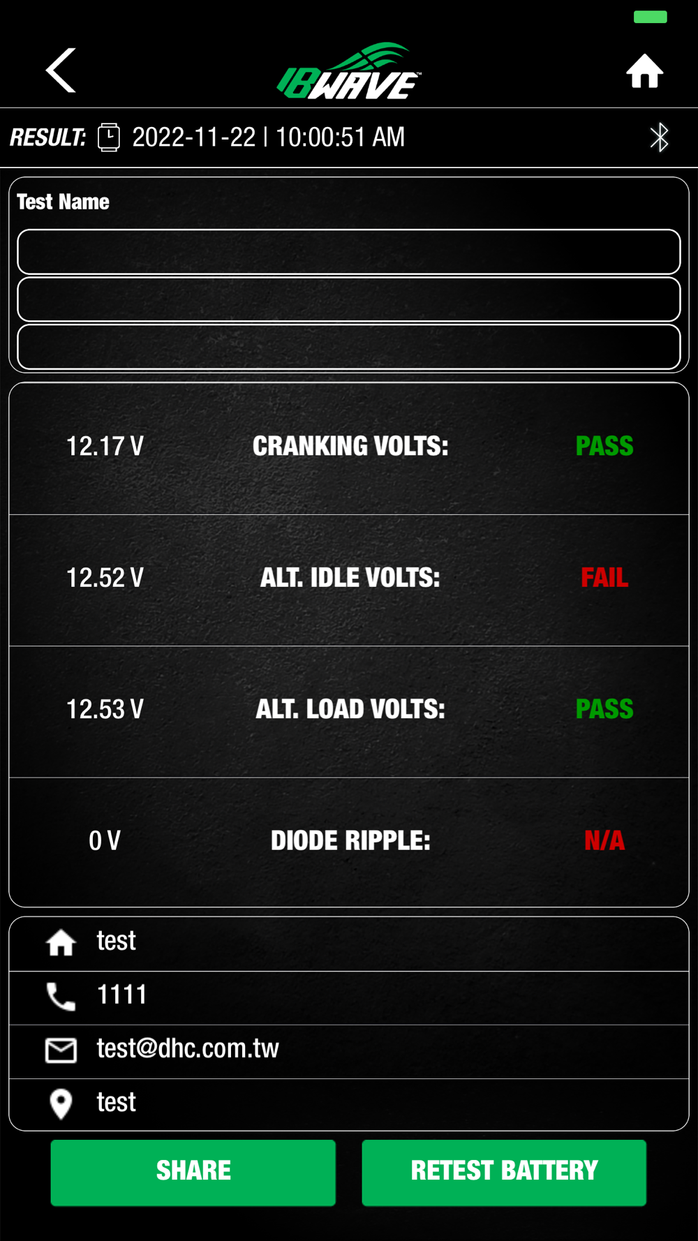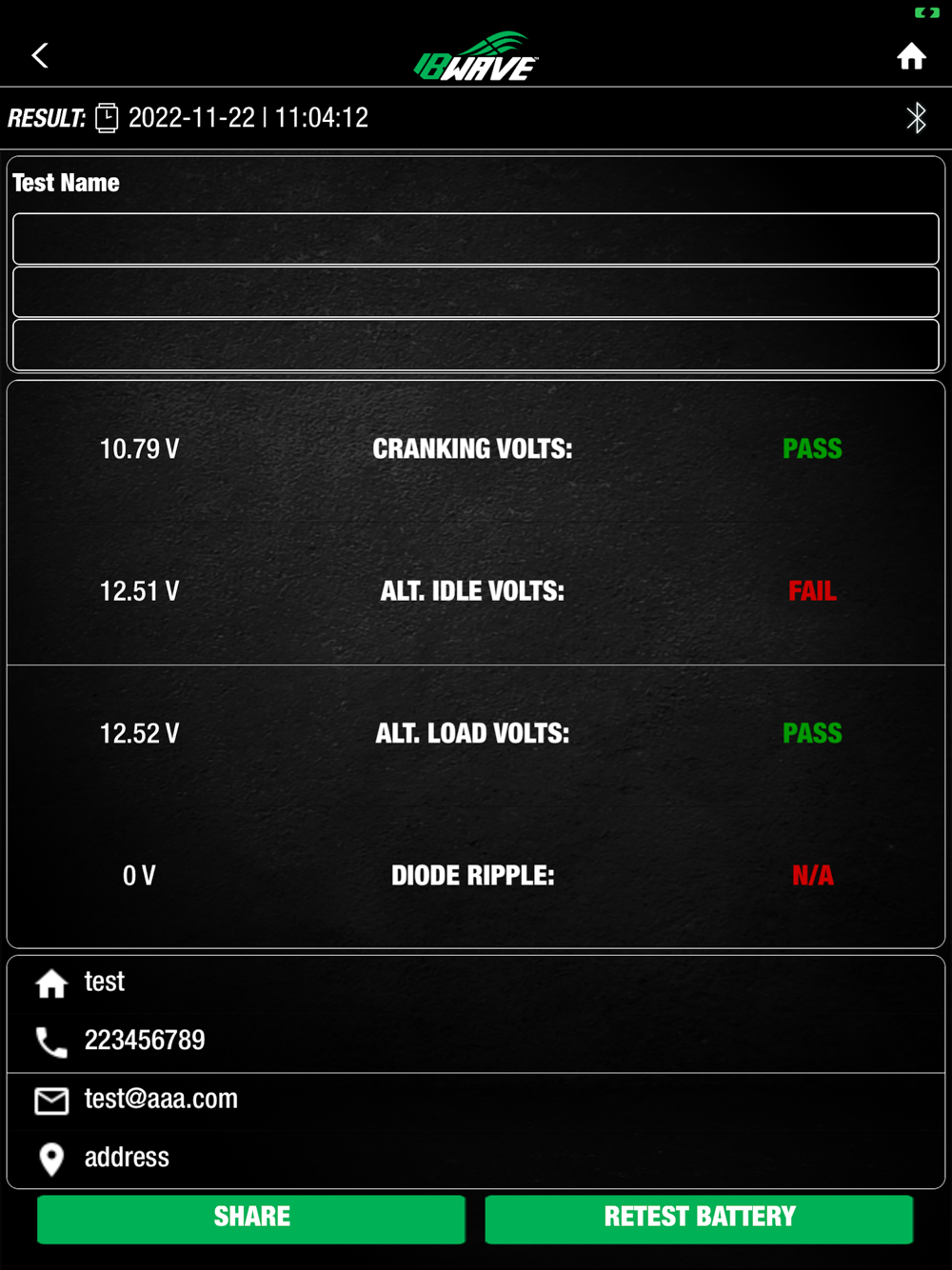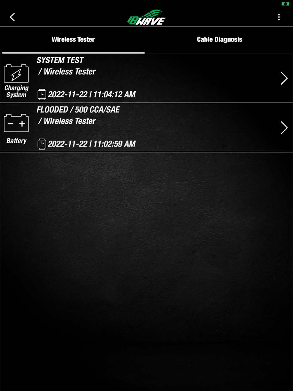 IB Wave Connect App easily syncs your Bluetooth Battery Testers to your smartphone or tablet. The wireless 6V/12V Battery Tester performs Battery Test, 12V Start-Stop Battery Test. It will also perform 12V/24V System Test. Simply download and install the IB Wave Connect App from APP Store to your mobile devices and experience the most advanced testing technology.