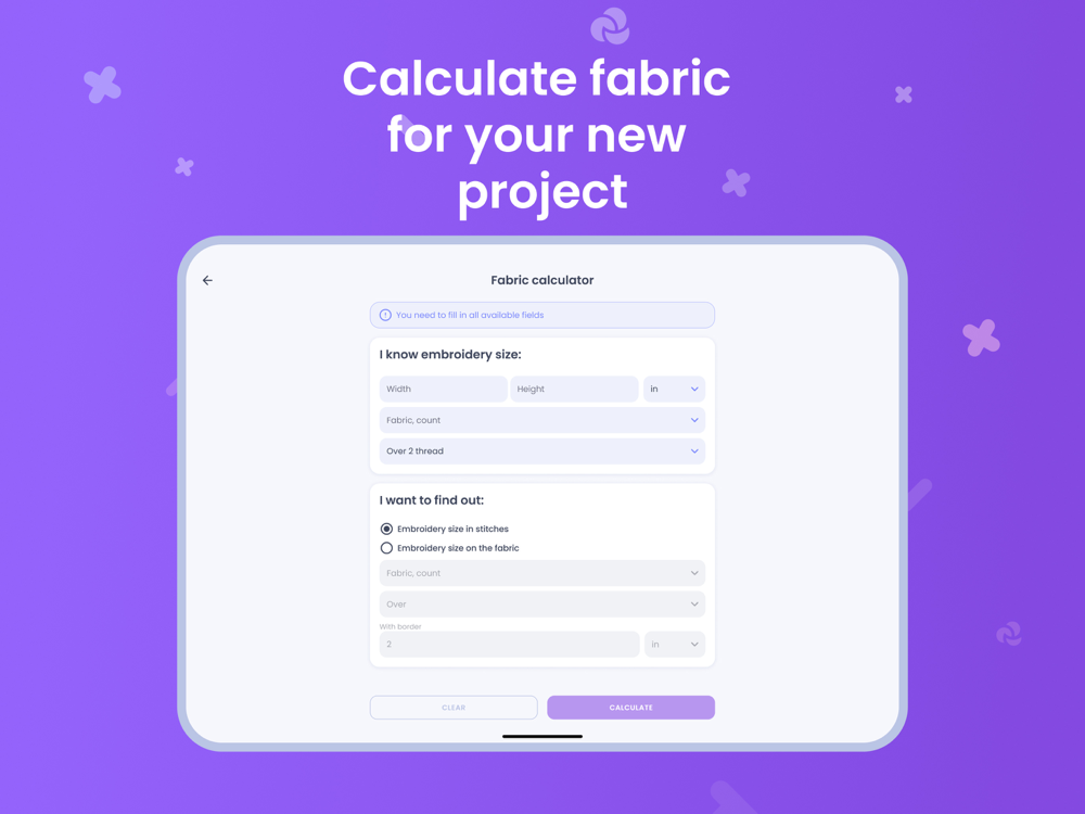 3) Achieve cross-stitching perfection with our built-in materials calculator. Never worry about running out of thread or fabric again.