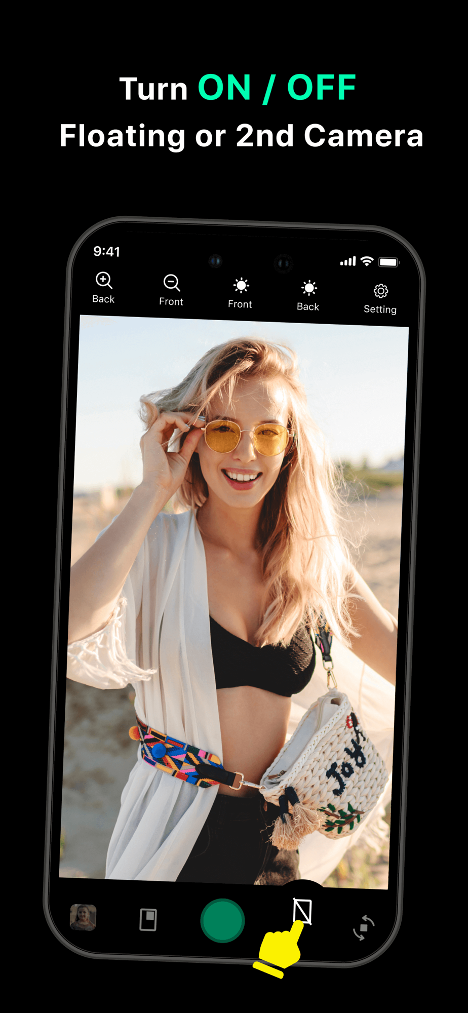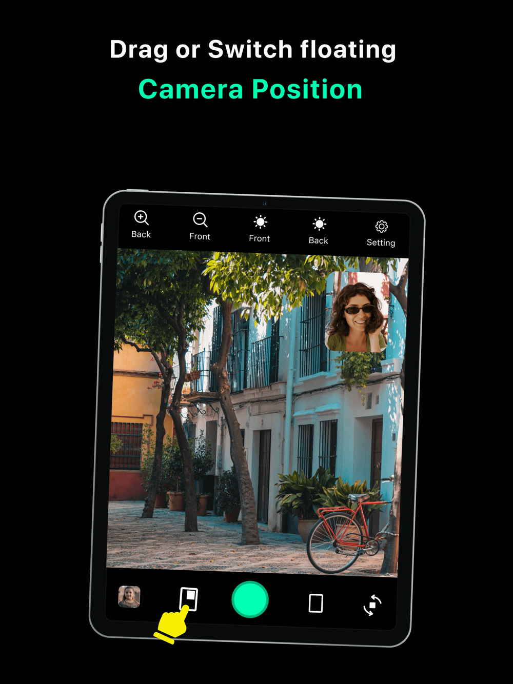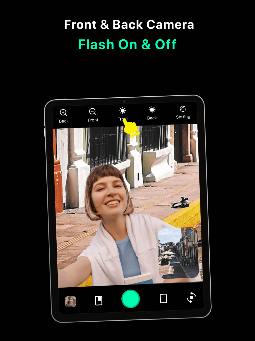 Dual Cam can simultaneously take photos or record videos with the front and back camera.