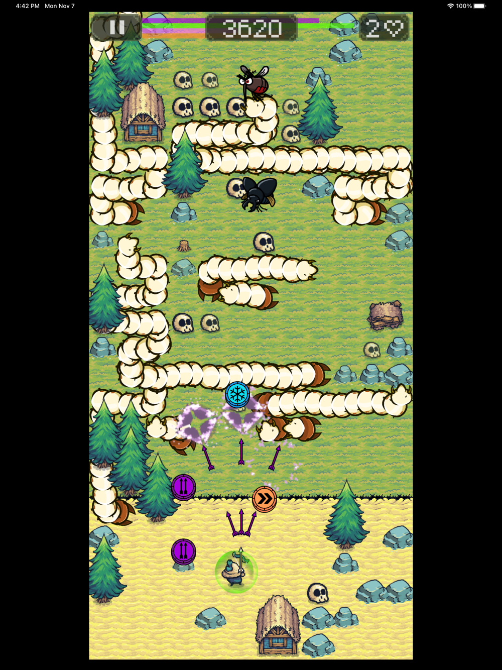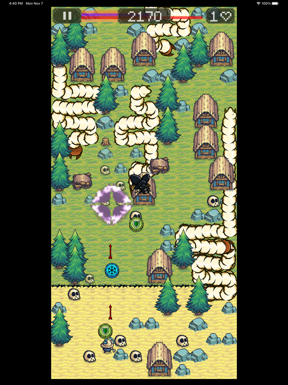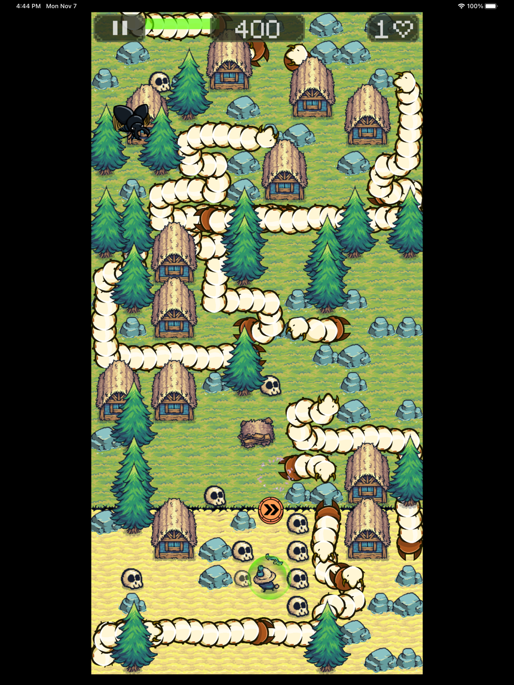 Heriesald is under attack! Your village is located in the heart of a huge forest, and because of its rich natural resources, the Larva King has decided to occupy it. The Larva King has a large army of larvae and he also summoned an army of angry insects. Now it’s time to pick up your bow and arrow and defend your home!