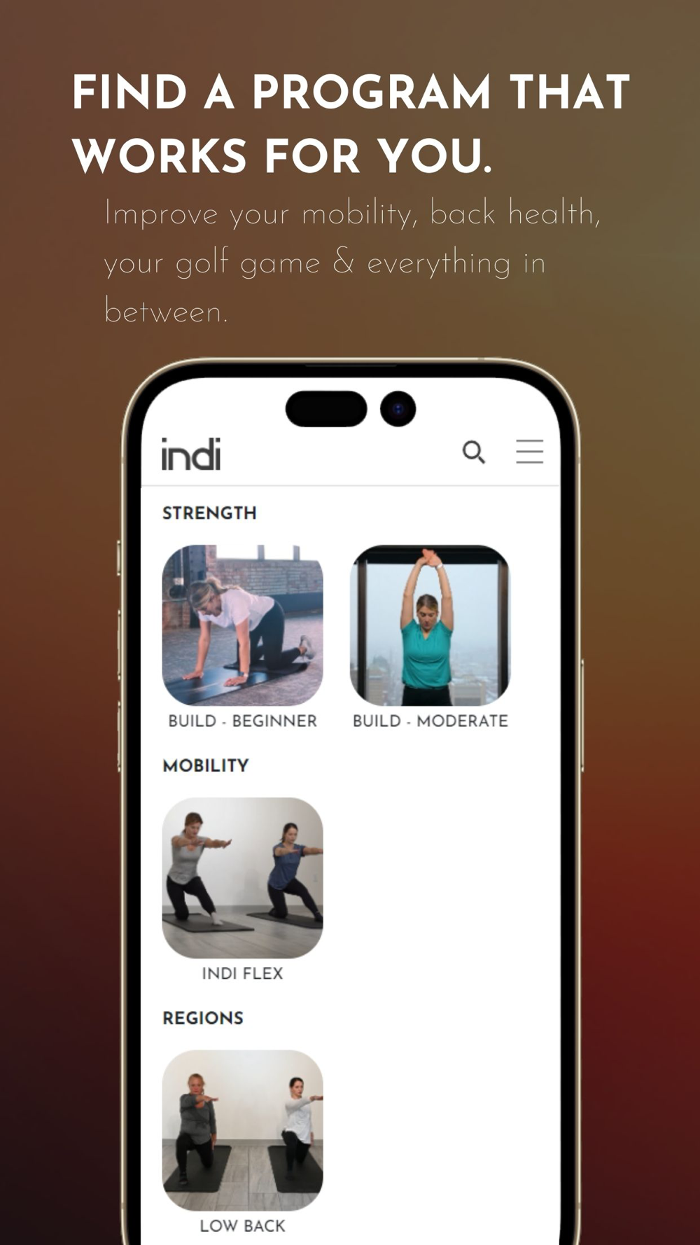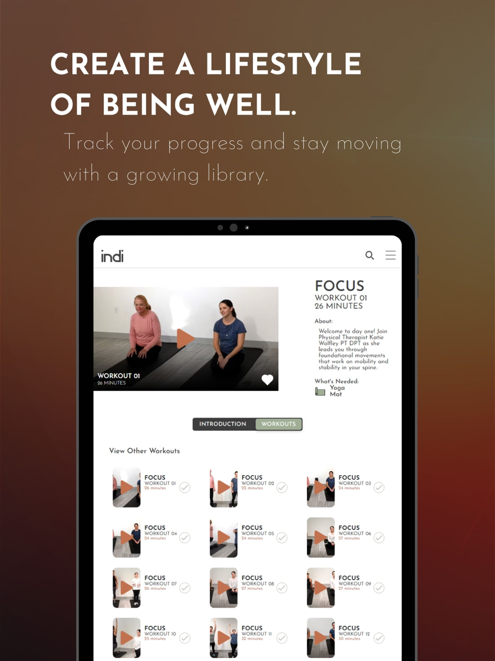 Whether you want to improve your walking, fitness, or low back health, indi can help track your progress and customize a plan that will work for you.
