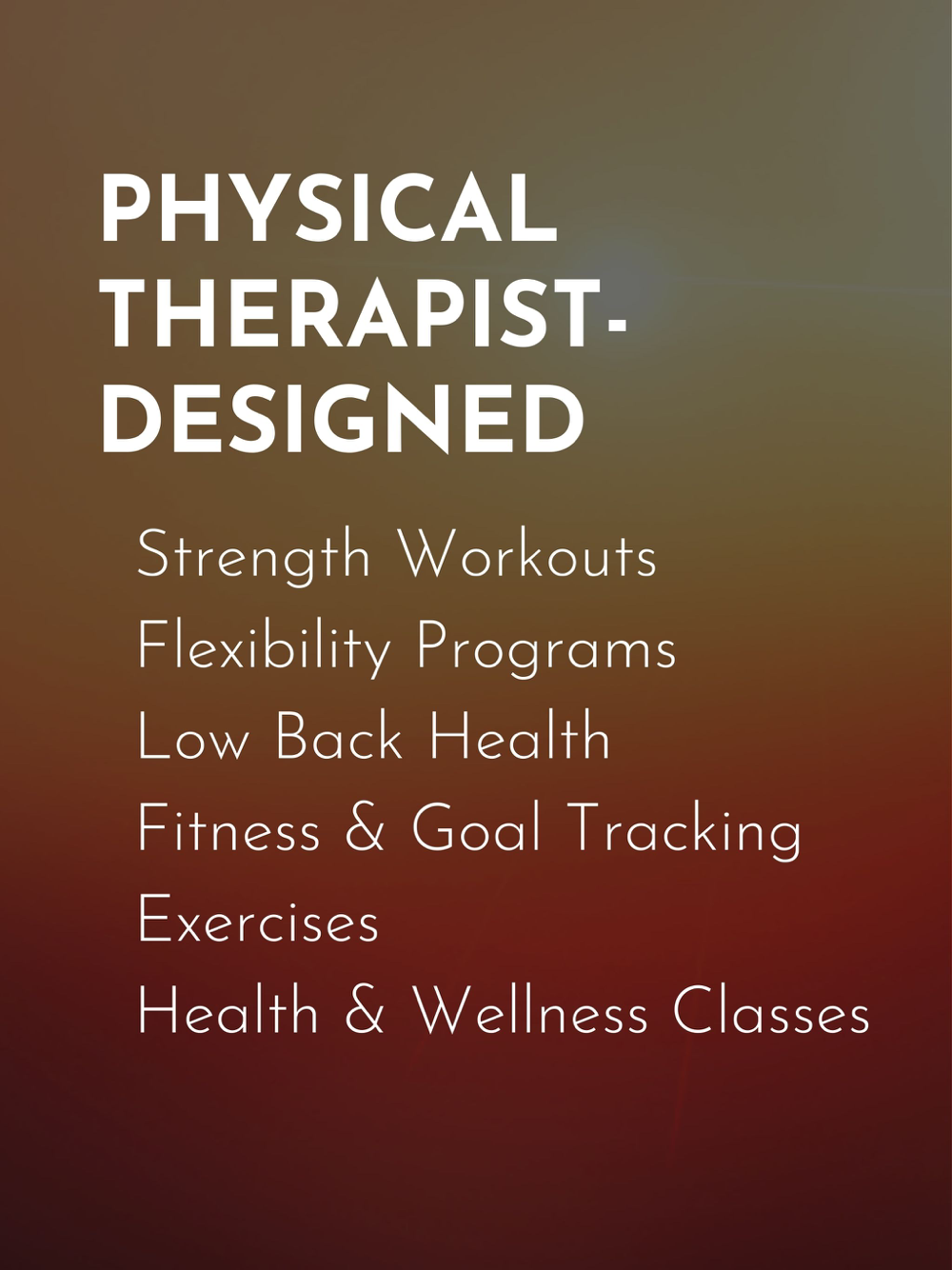 Don't let a bad back slow you down. Get moving with 24 Physical Therapist-designed workouts to improve your low back health.