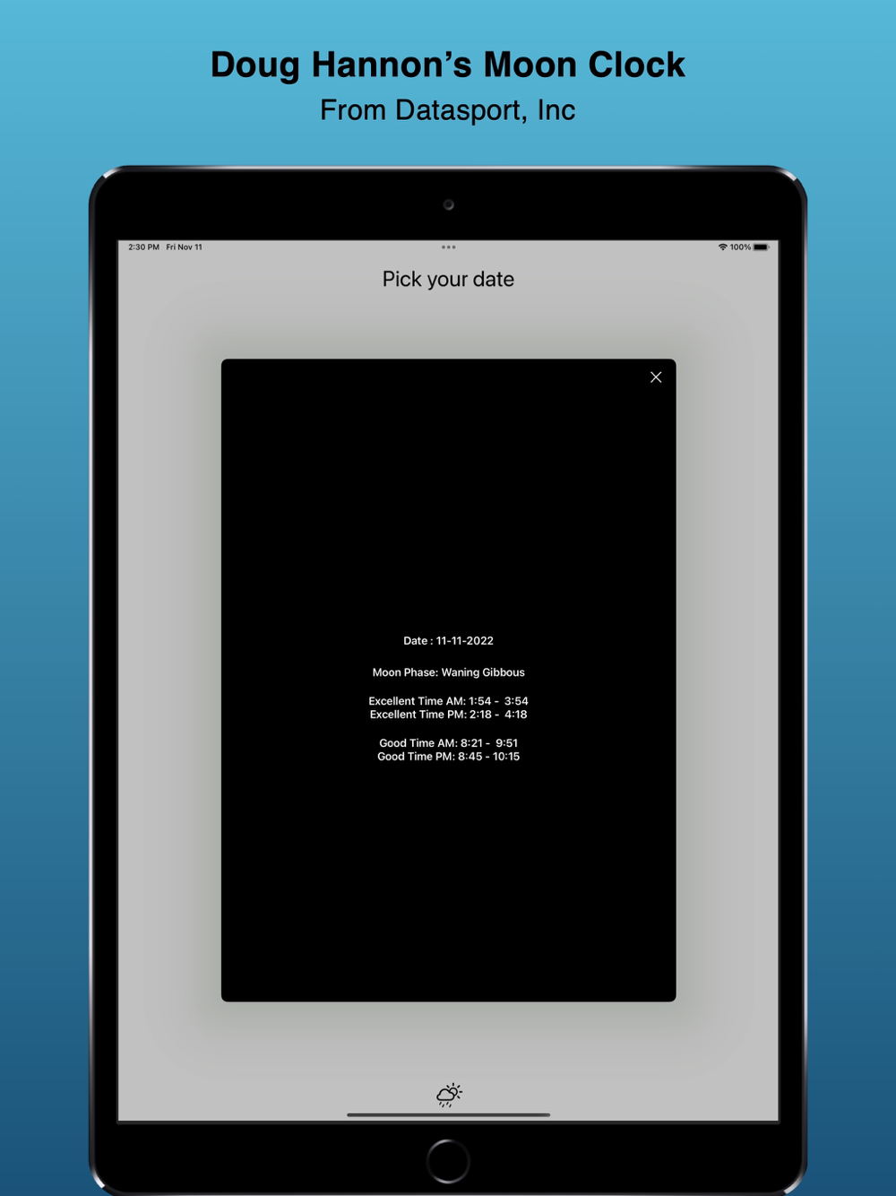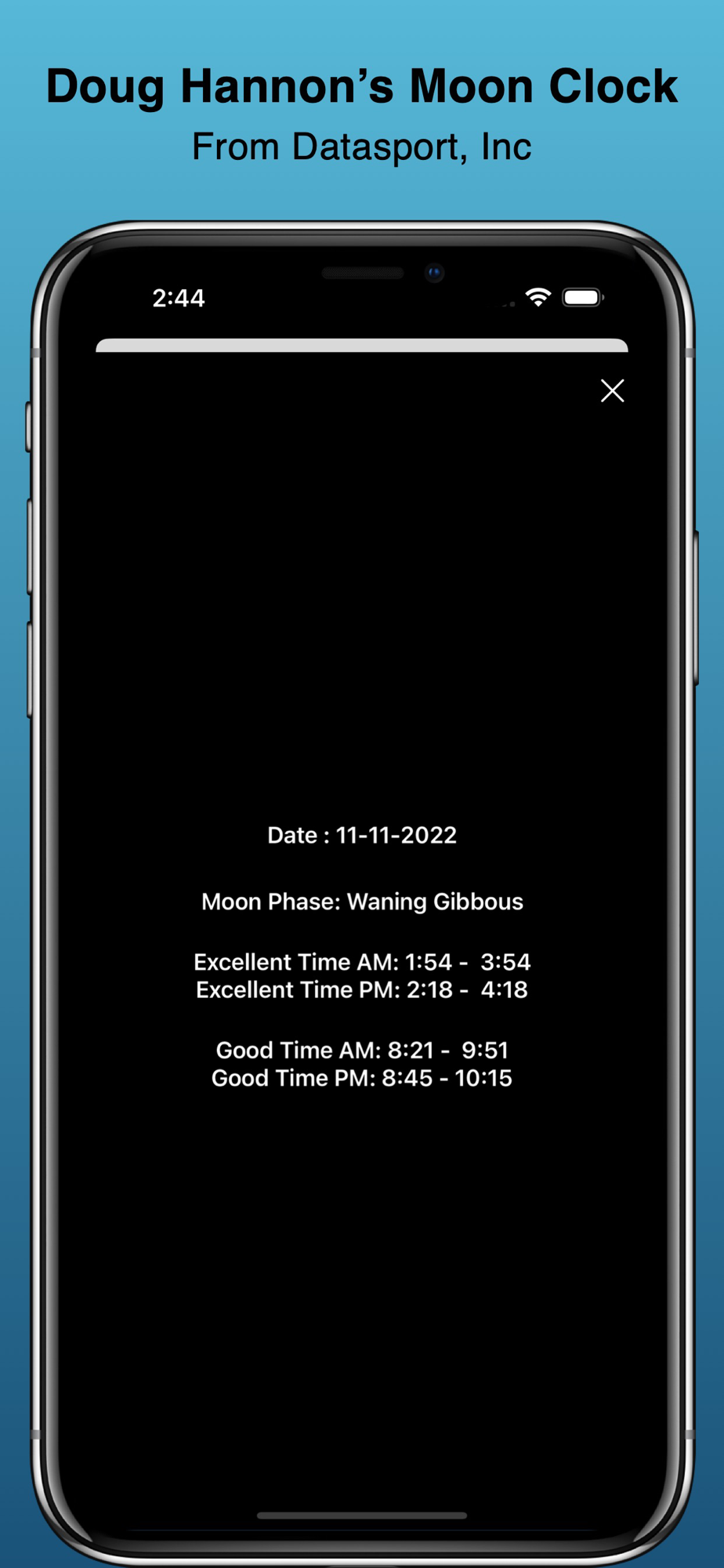 42 years ago, Doug Hannon, “The Bass Professor” produced his first “Moon Clock” calculator and Moon Times as a predictor of the best times to see fish, game, birds and all other wildlife. As one of America’s most respected naturalists, inventors and wildlife experts and videographers, Hannon used the times to make the best use of the time he spent in the field and on the water.