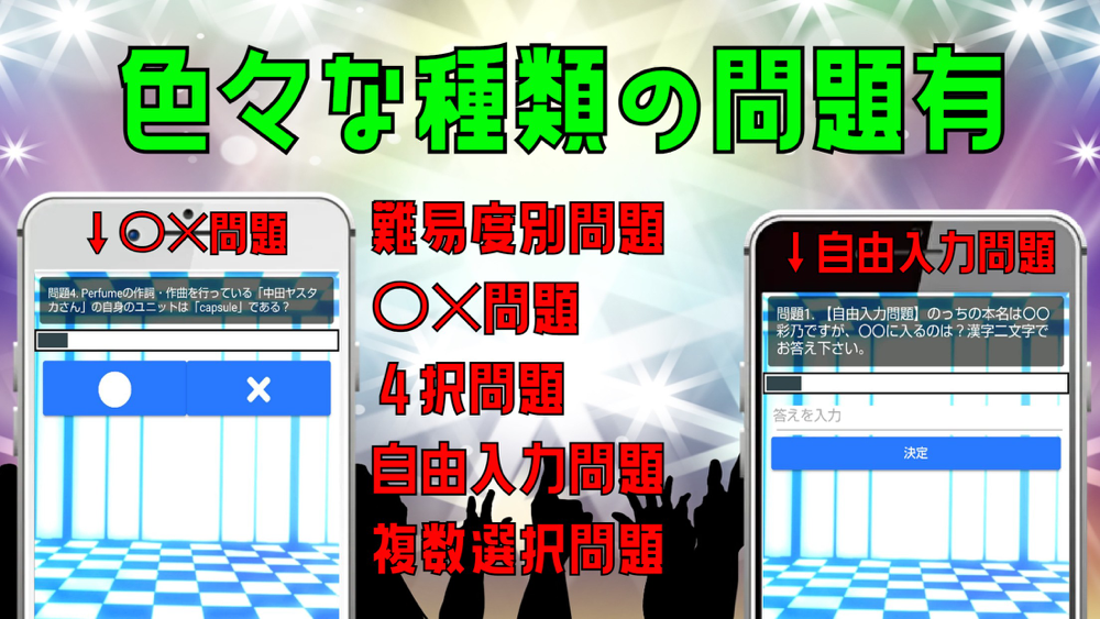 大人気グループ 「perfume(パフューム)」に関するクイズアプリです。
