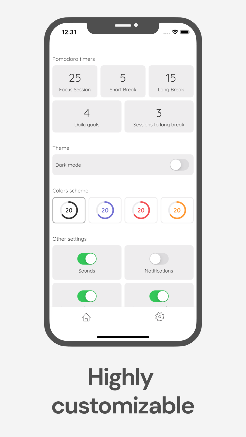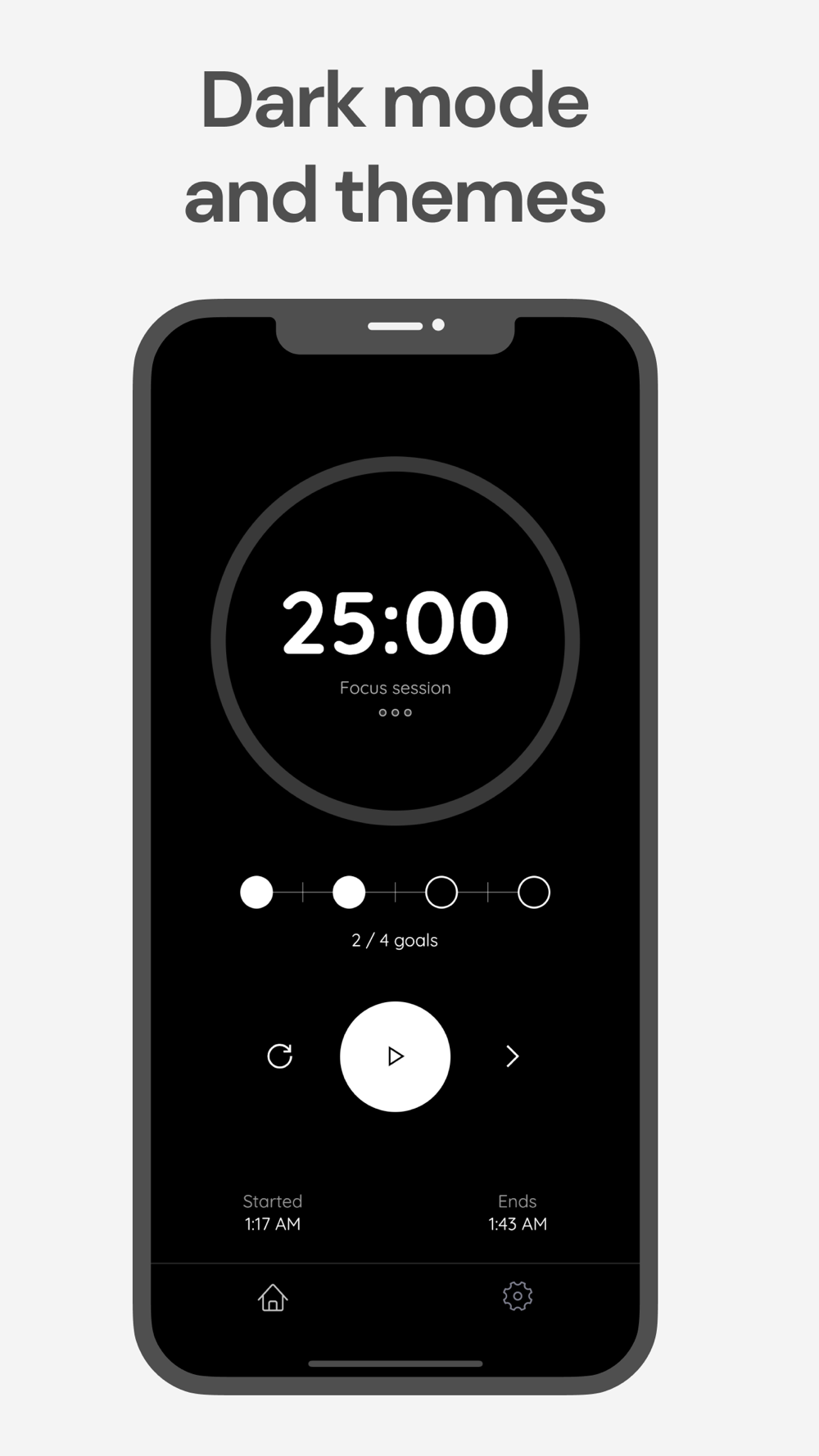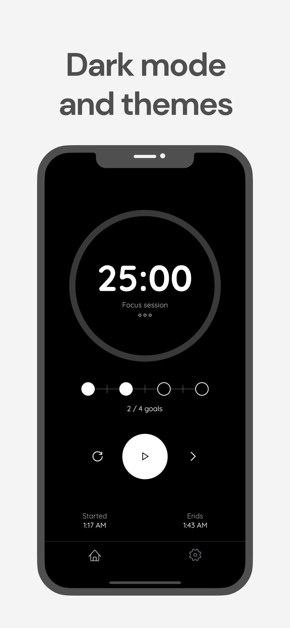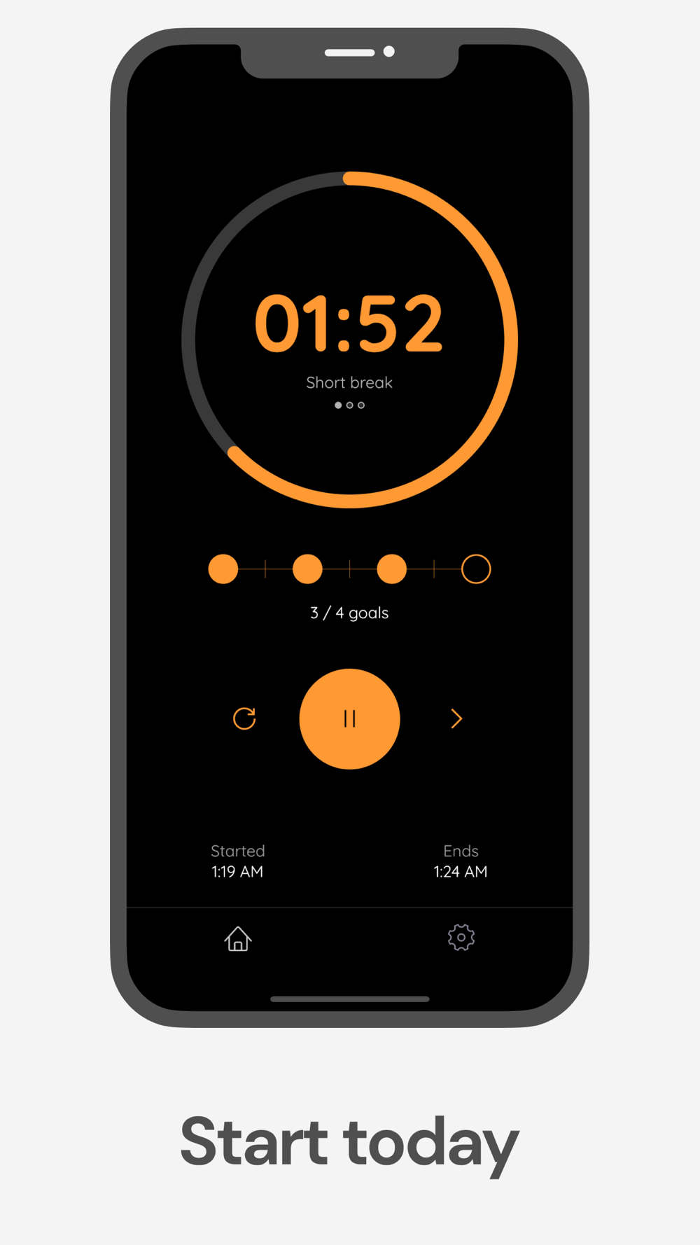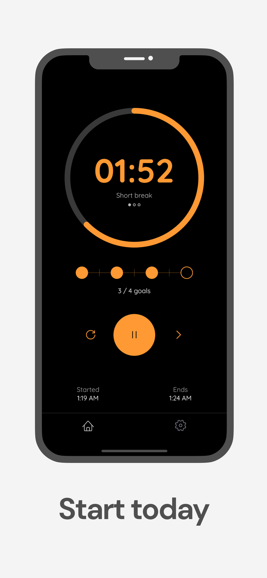 The application is clean and inspired by minimalistic design. You can hide all items from the home screen and show only the timer. No mess.
