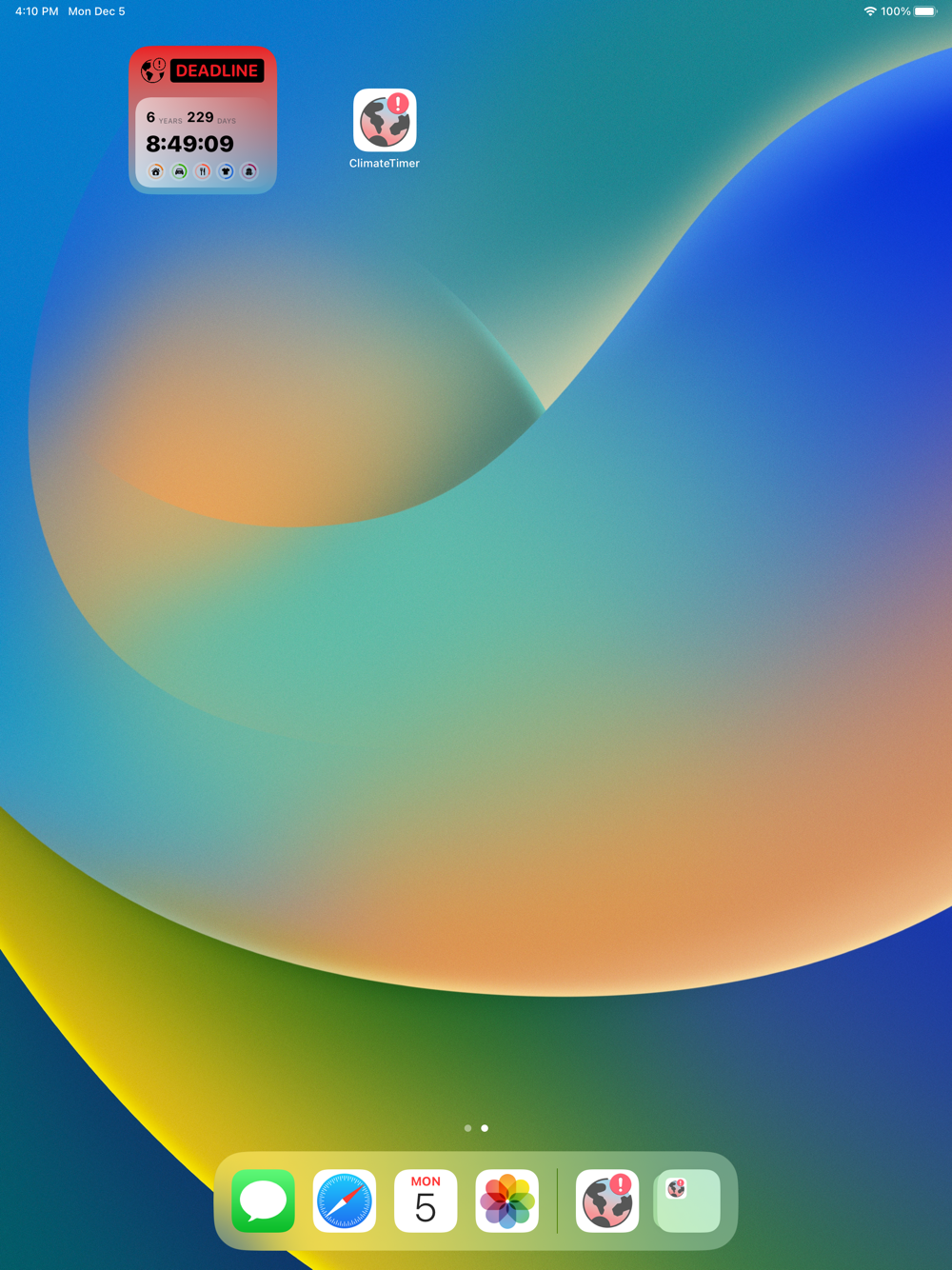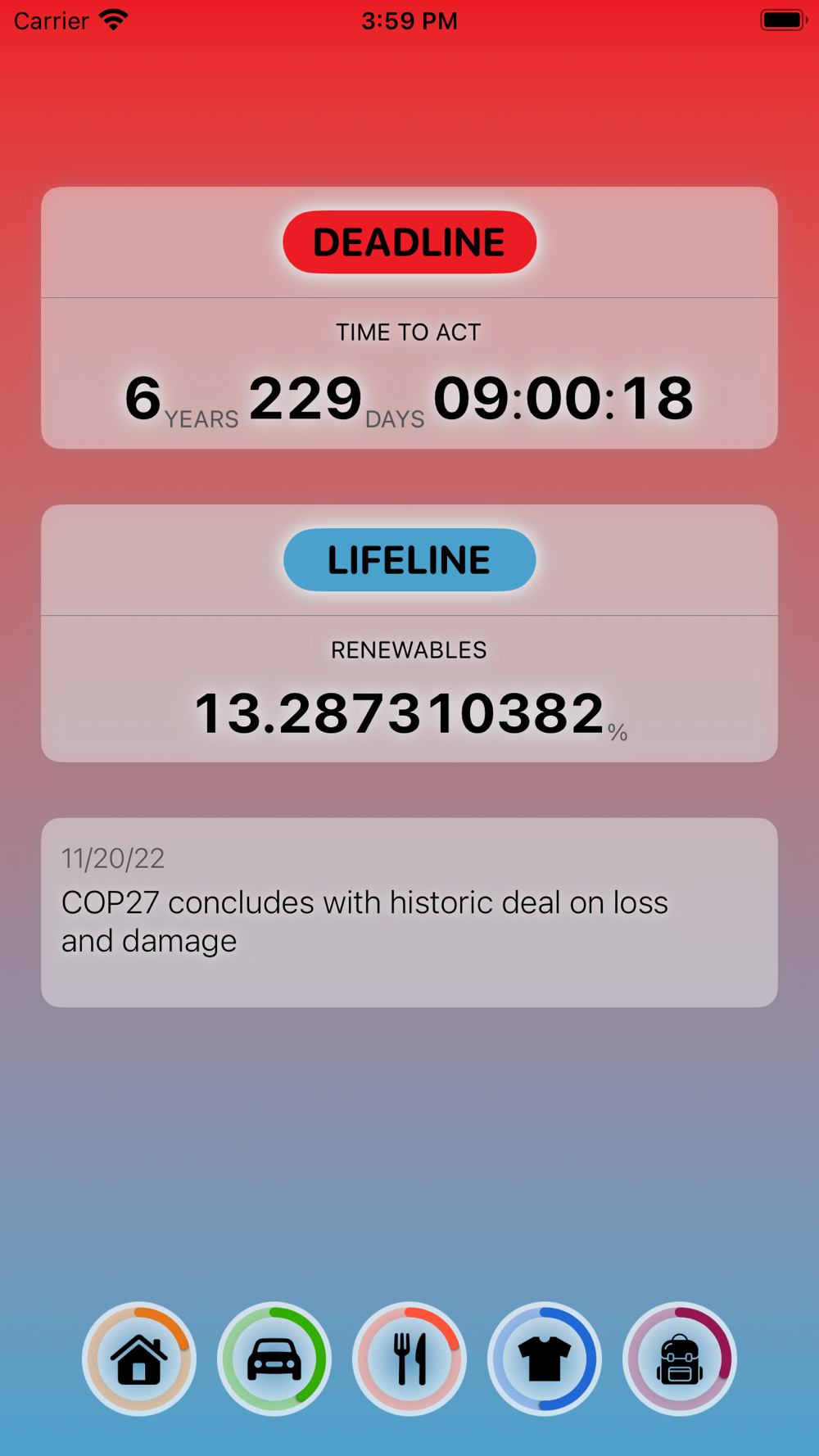 This application displays information published on "ClimateClock.world" and manages climate change self-action.