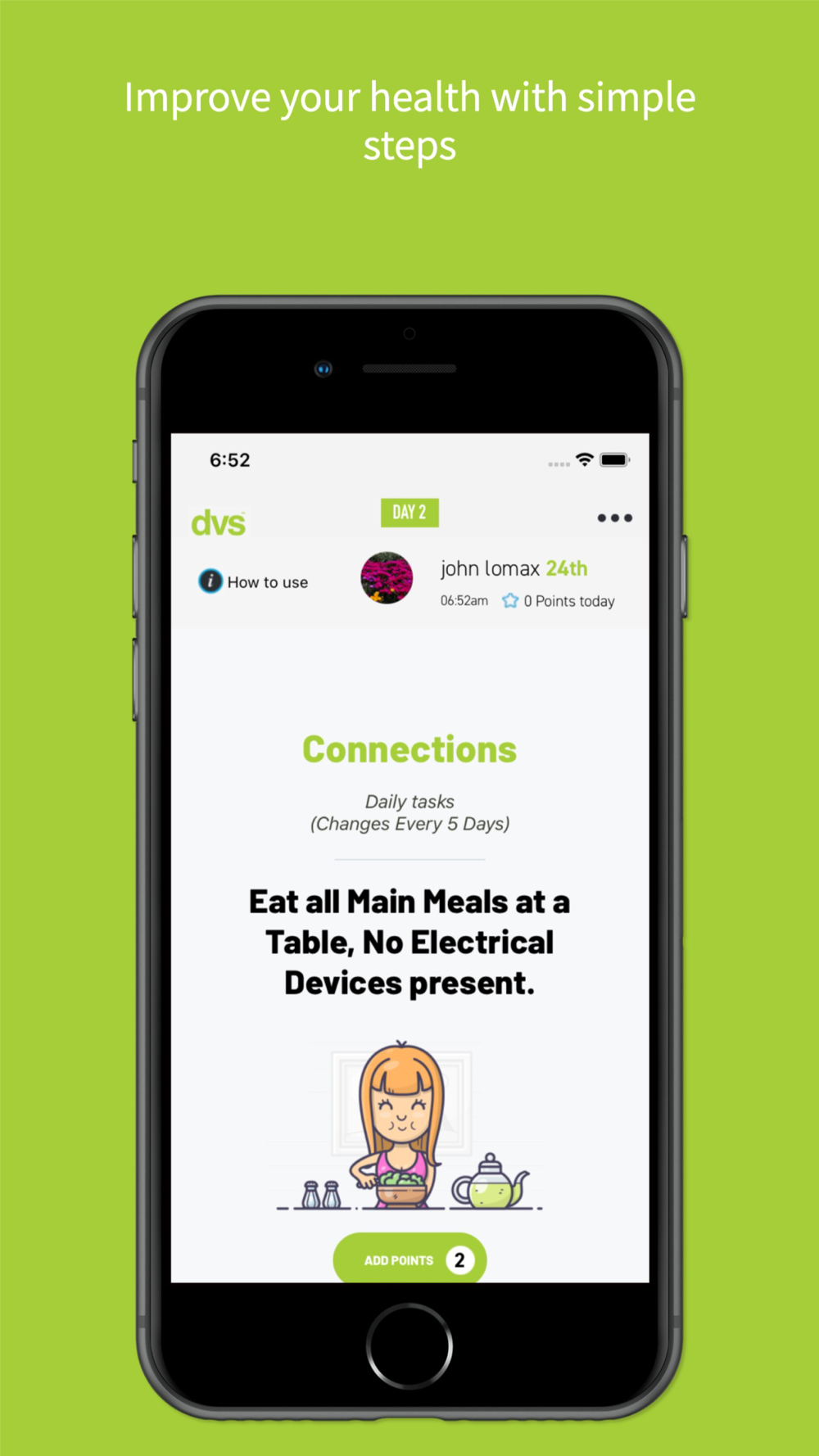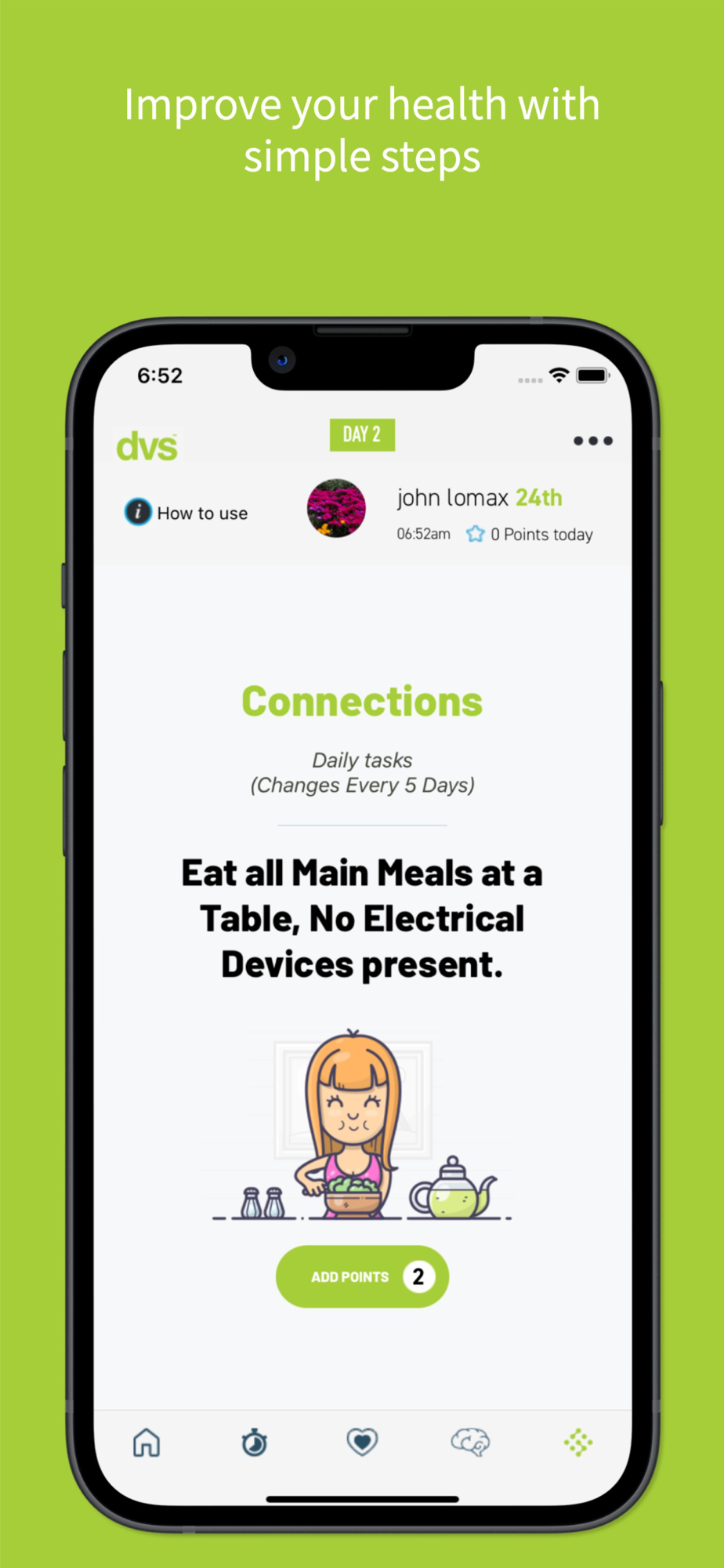 Simple daily habits performed everyday will create a healthy routine for life using the DVS Wellness app