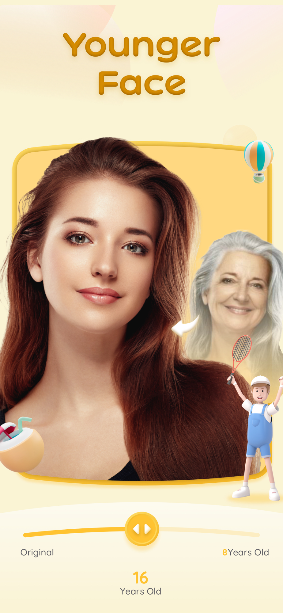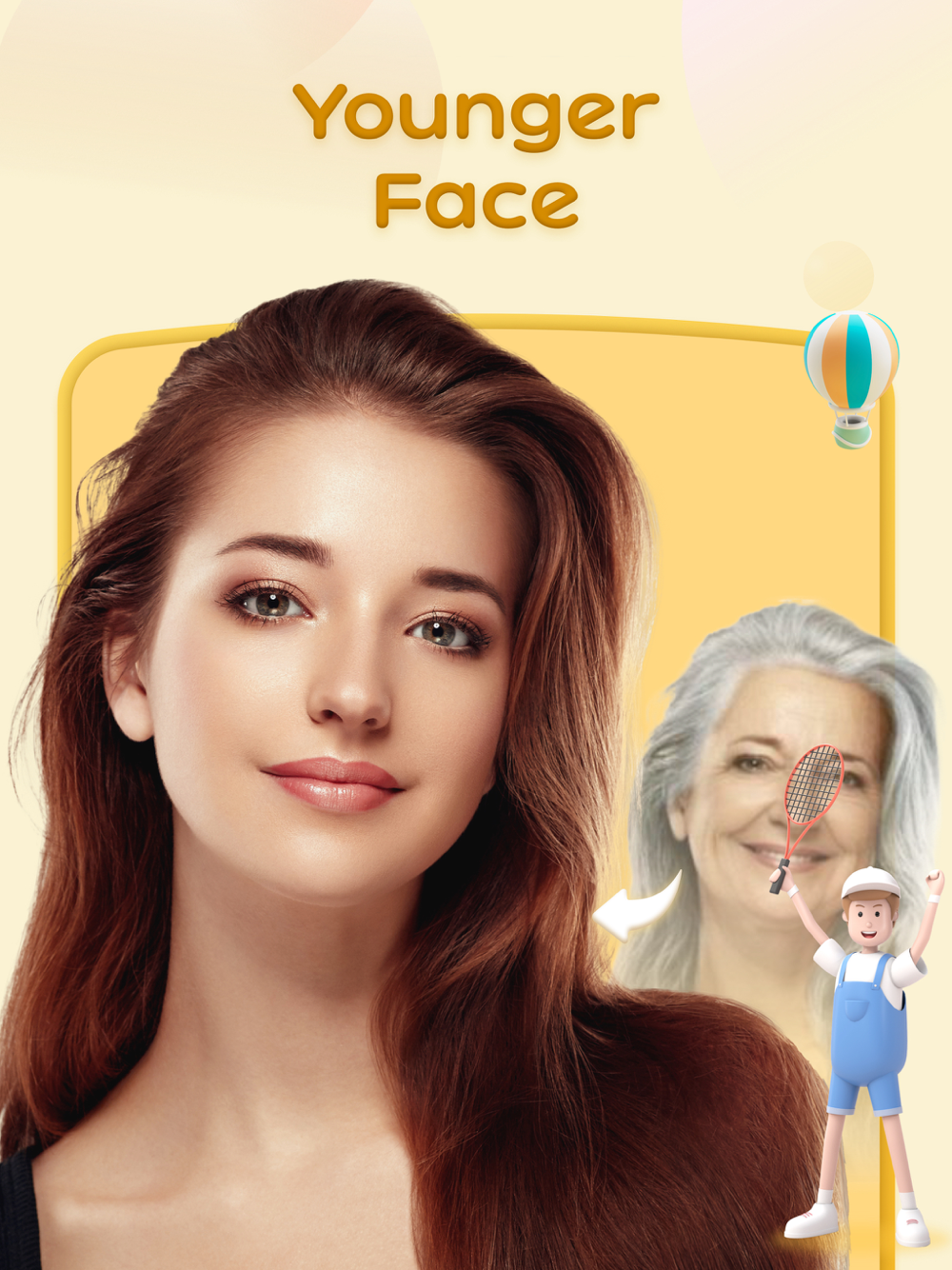With the young face feature, you can get younger as much as you want with one click. To get rid of all your wrinkles and smooth skin, go back to the age of 18.