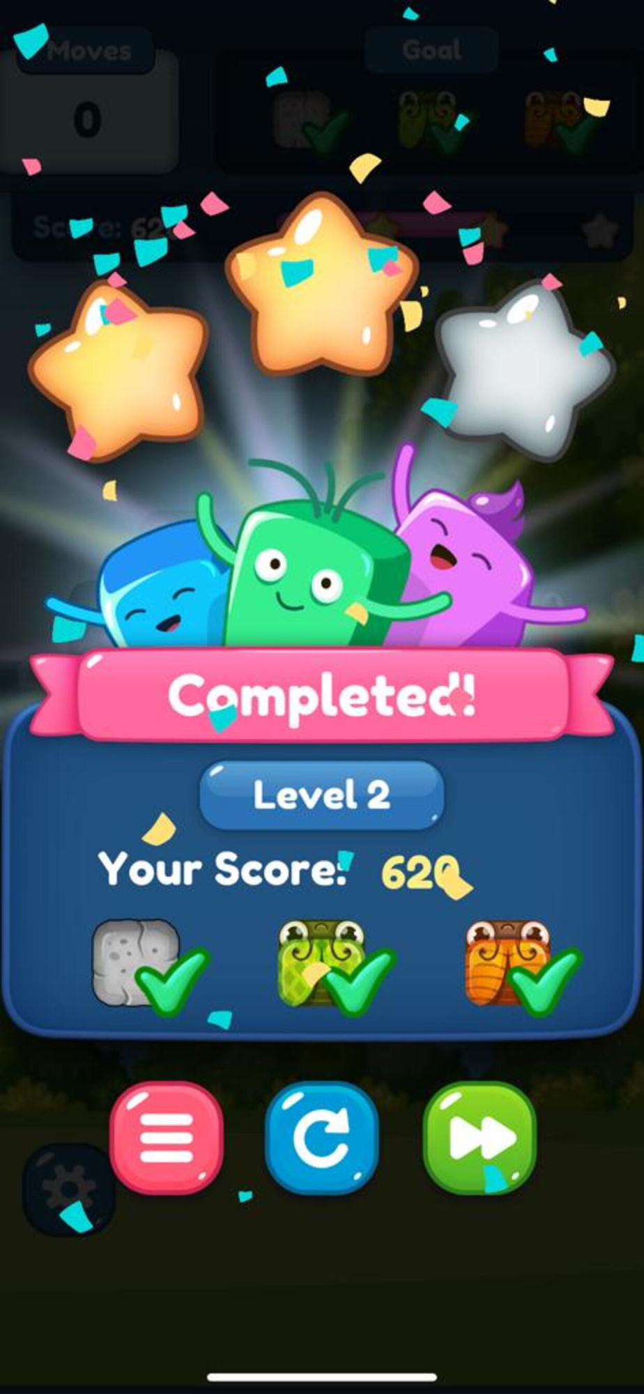 Complete goal requirements to move onto the next level.