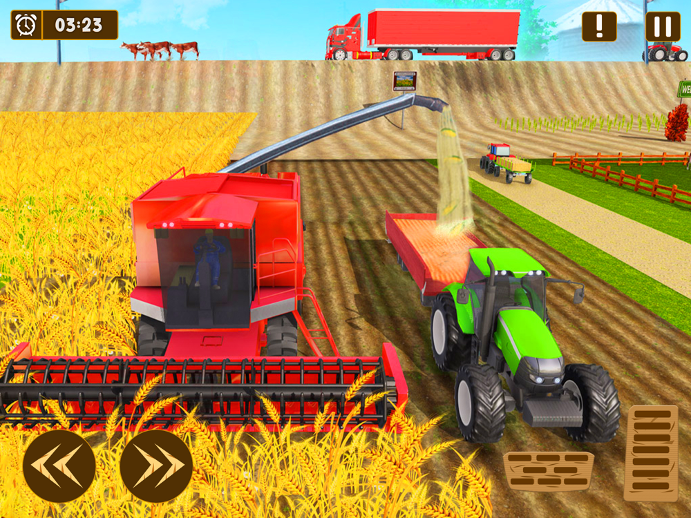Farming Sim Tractor Farming 3d world of farming with Farming Simulator 2022 games Harvest many different crops, tend to your livestock of farming animals like cows, and sheep, and now ride your own horses, letting you explore farming land around your tractor farm in a brand-new way. Sell your products in a dynamic market to earn money which you can invest in additional heavy farming machinery for farming and the expansion of your Village farm in Farming Sim Tractor Farming 3D Game.