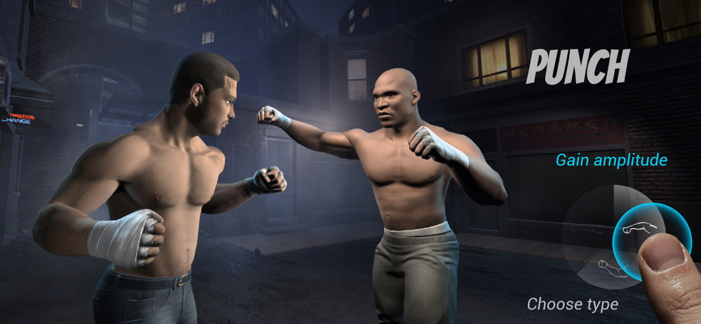 Tap and choose jab, hook or uppercut, hold to gain amplitude. Drop punches instantly