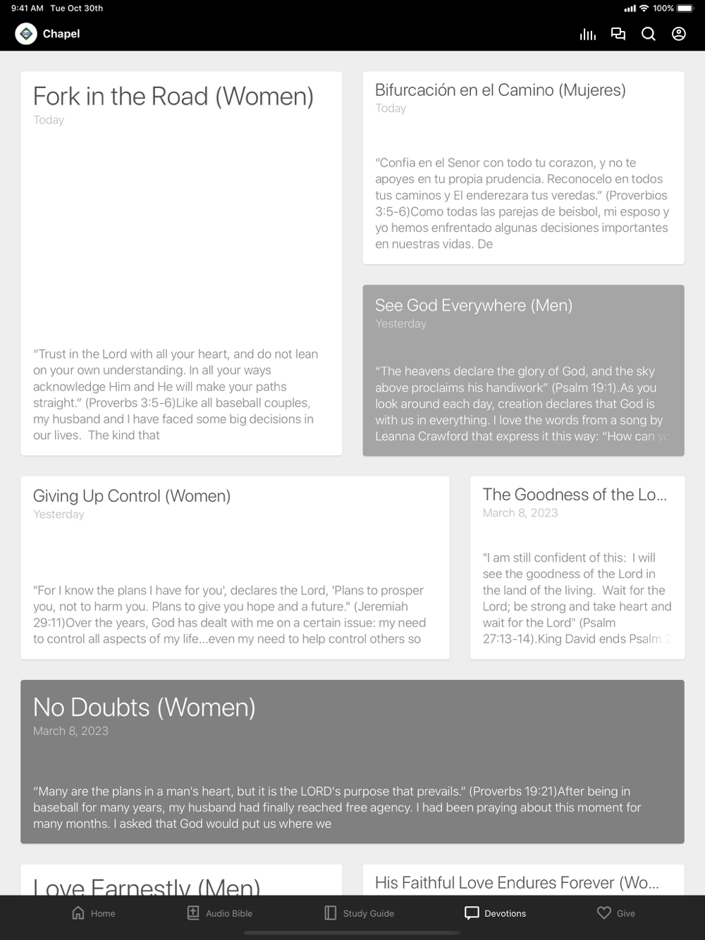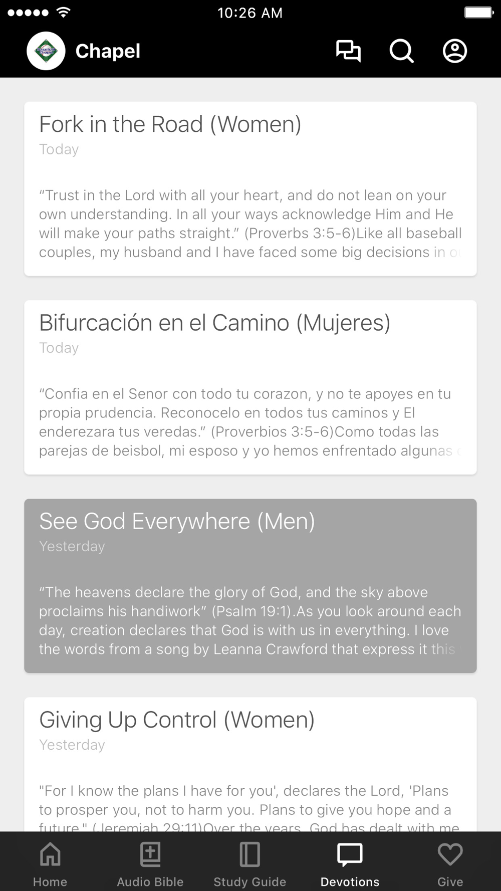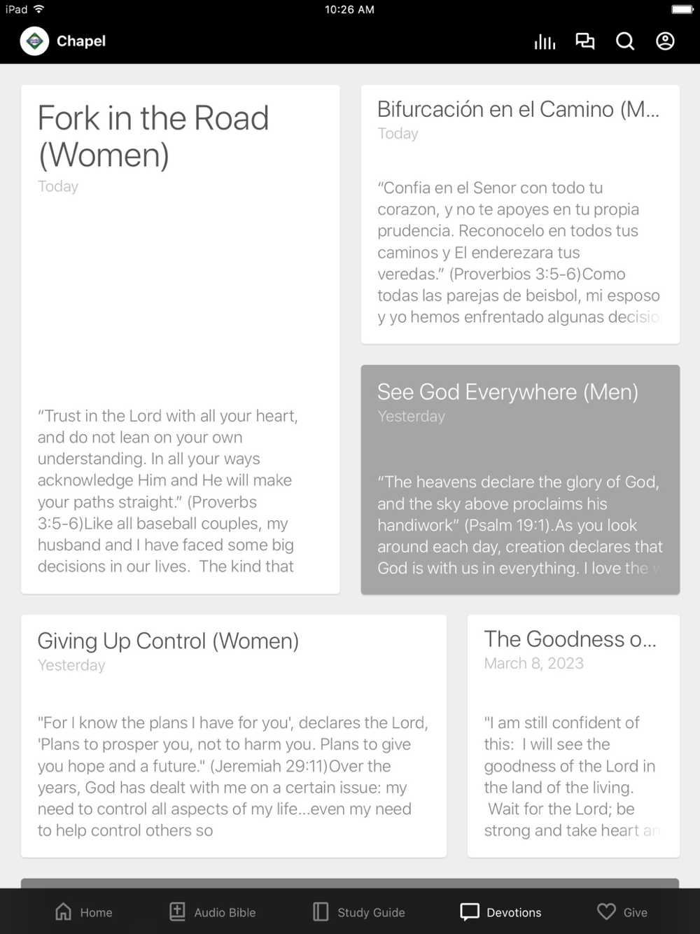 This app will help you stay connected with the day-to-day life of chapel. With this app you can: get connected to your local chapel leader, women's ministry leader, communicate within your team, access additional resources to enhance your spiritual life, and follow along with the yearly teaching plan.