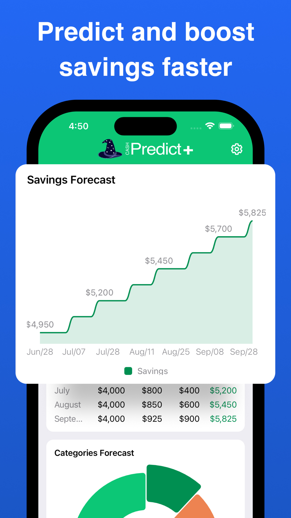 Cash Predict keeps you looking to the future: plan ahead before spending any money.