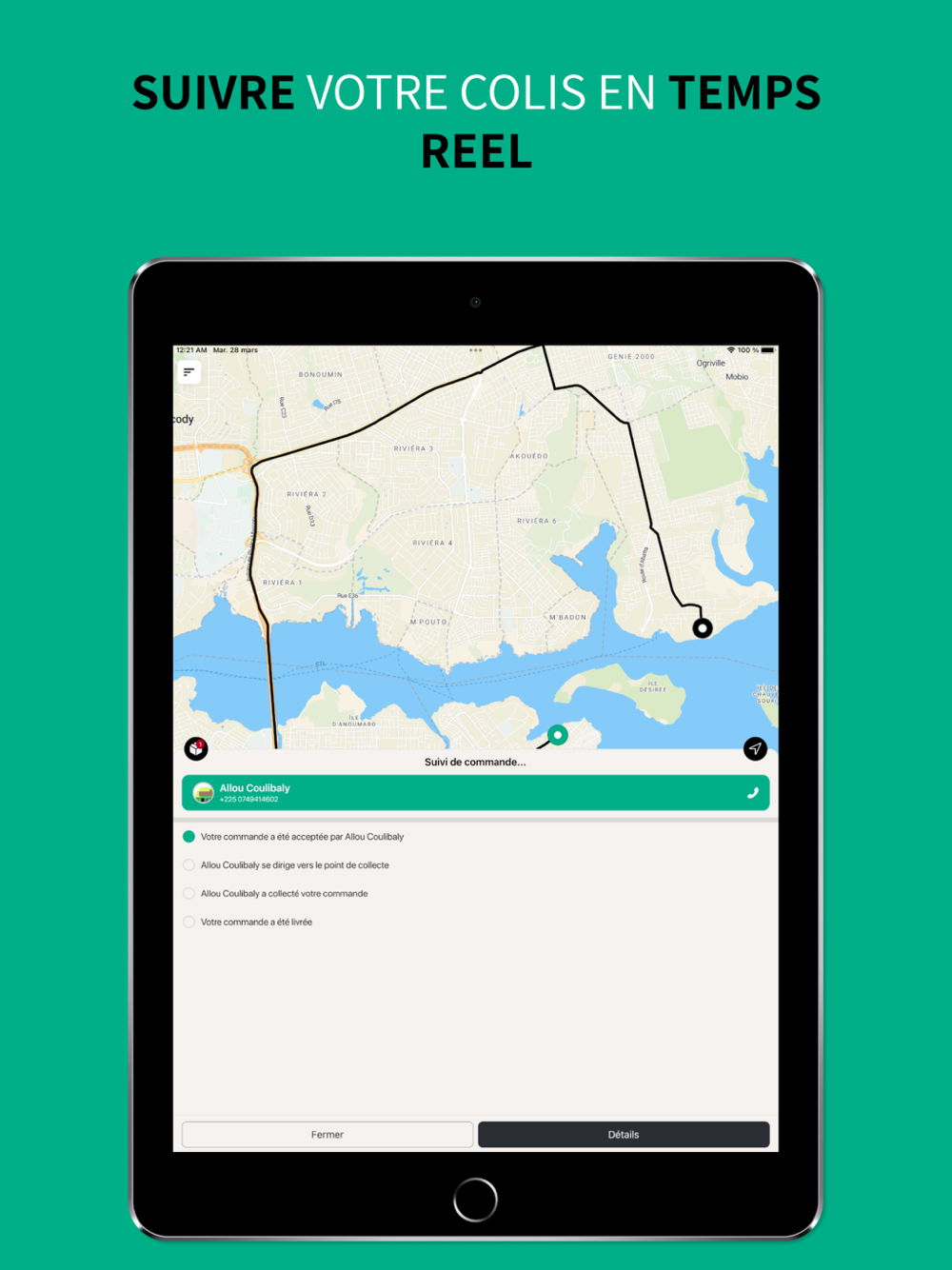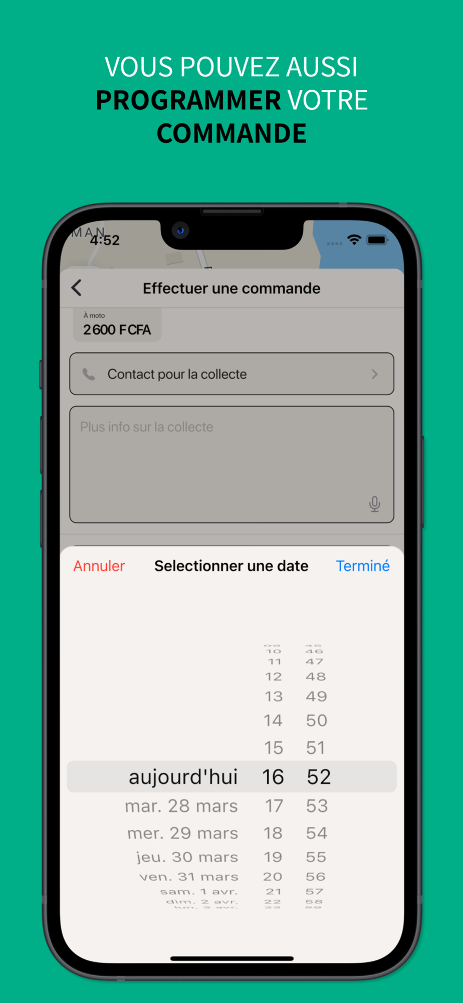 L'application offre également la possibilité de planifier une commande pour une date et une heure spécifiques, ce qui permet aux clients de programmer leur livraison à l'avance et d'être sûrs que leur colis arrivera à temps. Les clients peuvent également voir l'historique de leurs commandes précédentes, ce qui leur permet de suivre leurs livraisons antérieures et de connaître leur statut.