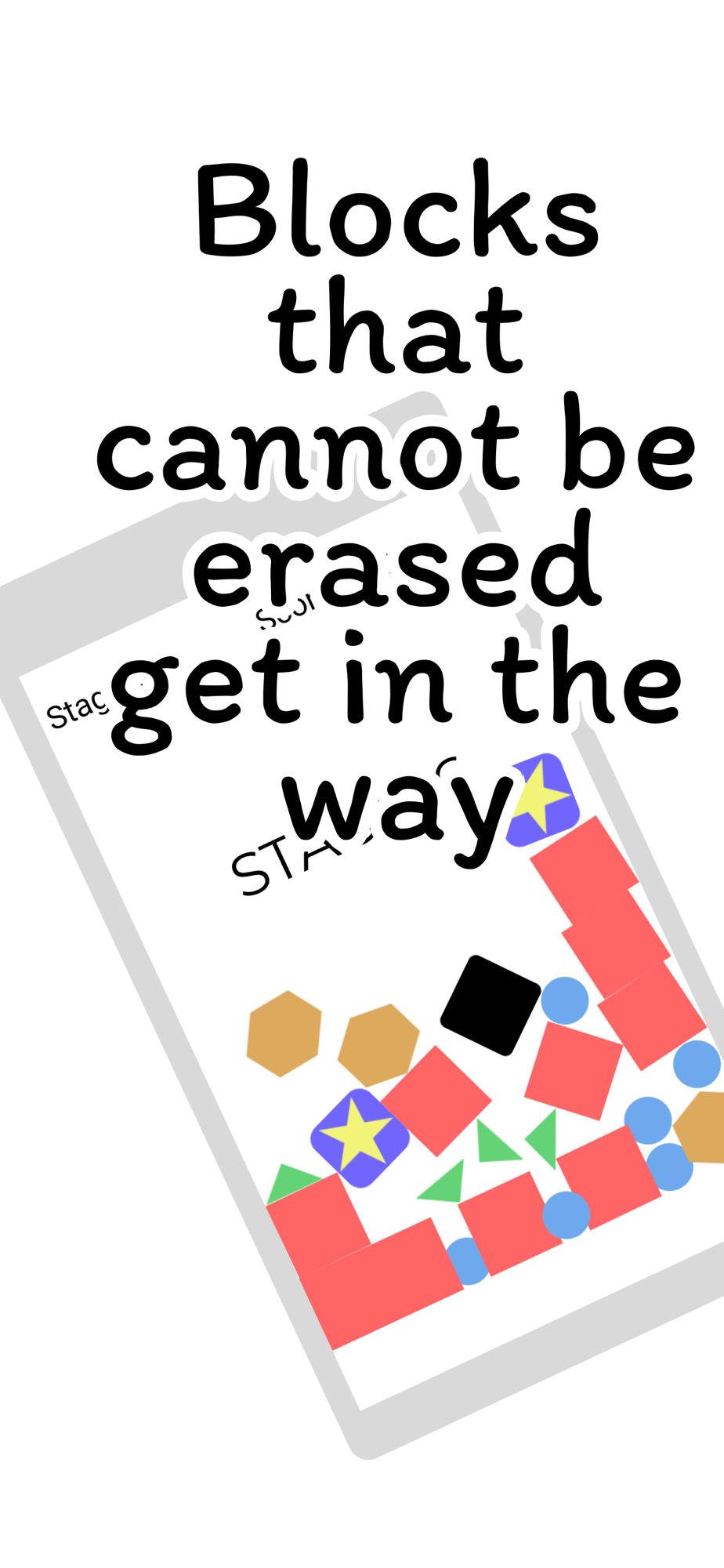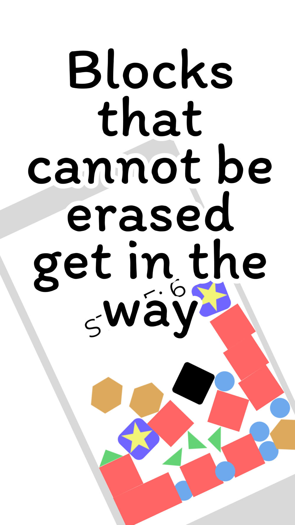 Blocks other than star-shaped blocks can be erased by tapping them, but only black blocks cannot be erased.