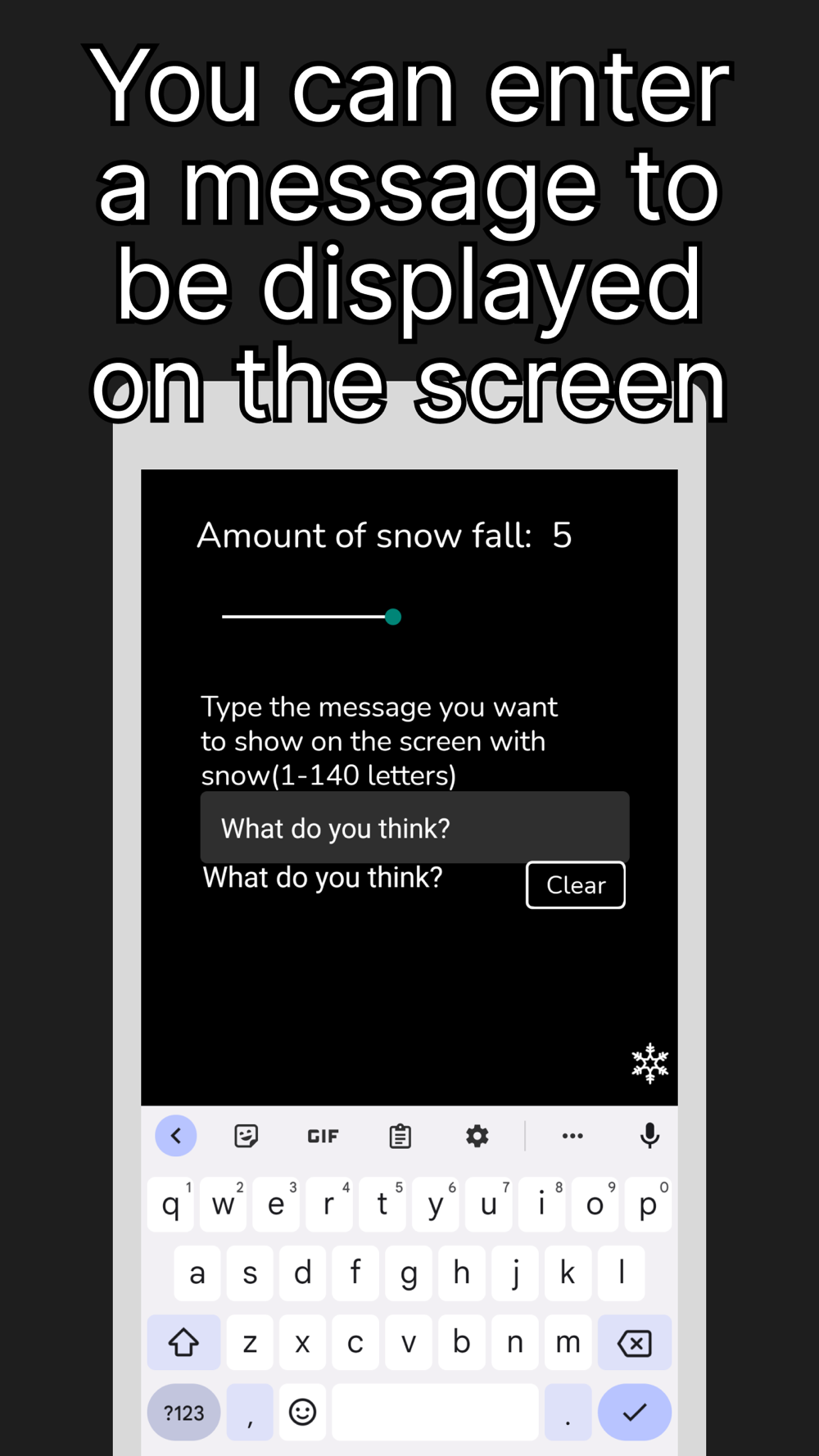 By entering a message in the settings screen, that message can be displayed on the screen.