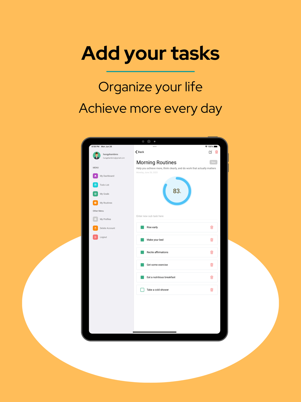 Pomo List helps you organize your time based on the most important things in your life. As a result, You are happier and more confident.