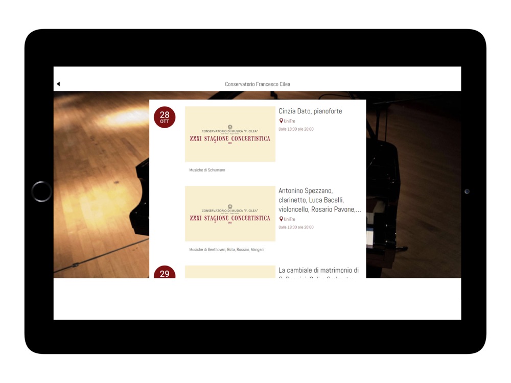 Attraverso quest'App si potranno controllare le attività del Conservatorio, scaricare o visionare i documenti, prenotare le aule per le lezioni, seguire tutti gli eventi organizzati, richiedere informazioni e contattare la segreteria.