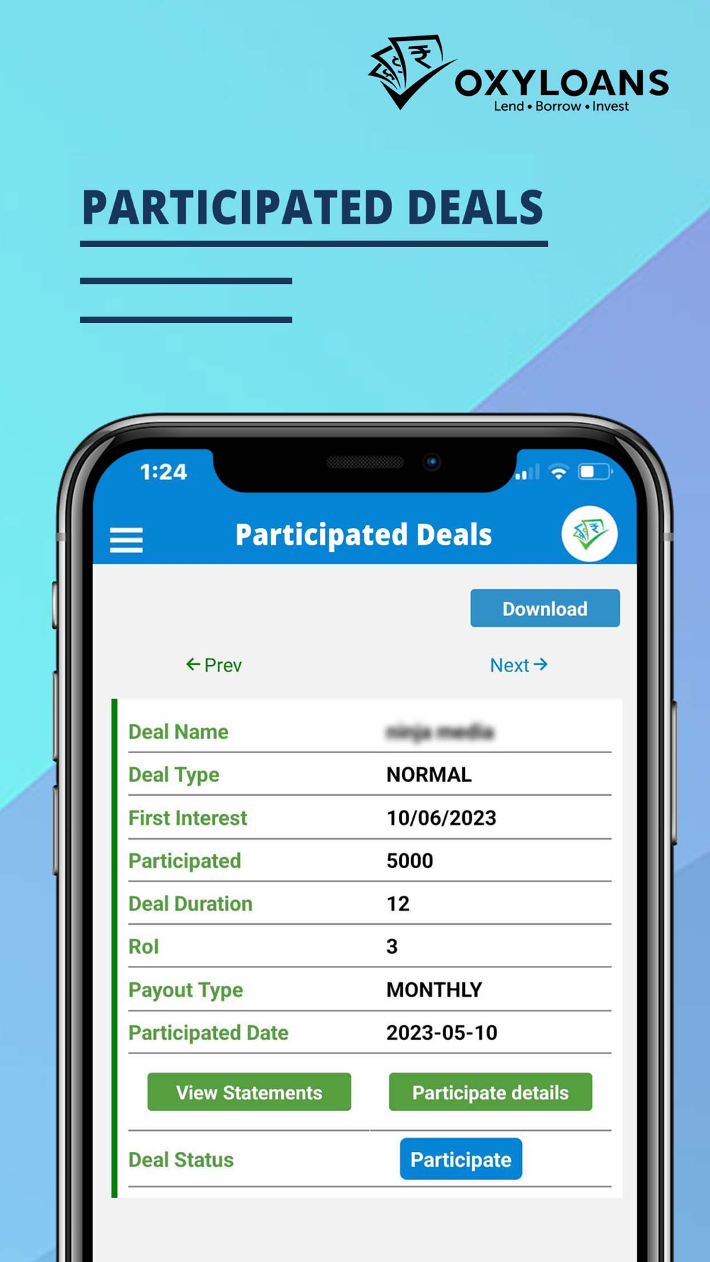 OxyLoans.com is a revolutionary FinTech platform. We encourage Peer-to-Peer Lending (P2PL) and Peer-to-Peer Investing (P2PI).We invite Banks, Financial Institutions as lenders.We enable lender, Investor exchange funds directly with Borrowers. Our proprietary algorithms include Credit Scoring, Underwriting and Agreement Preparation.
