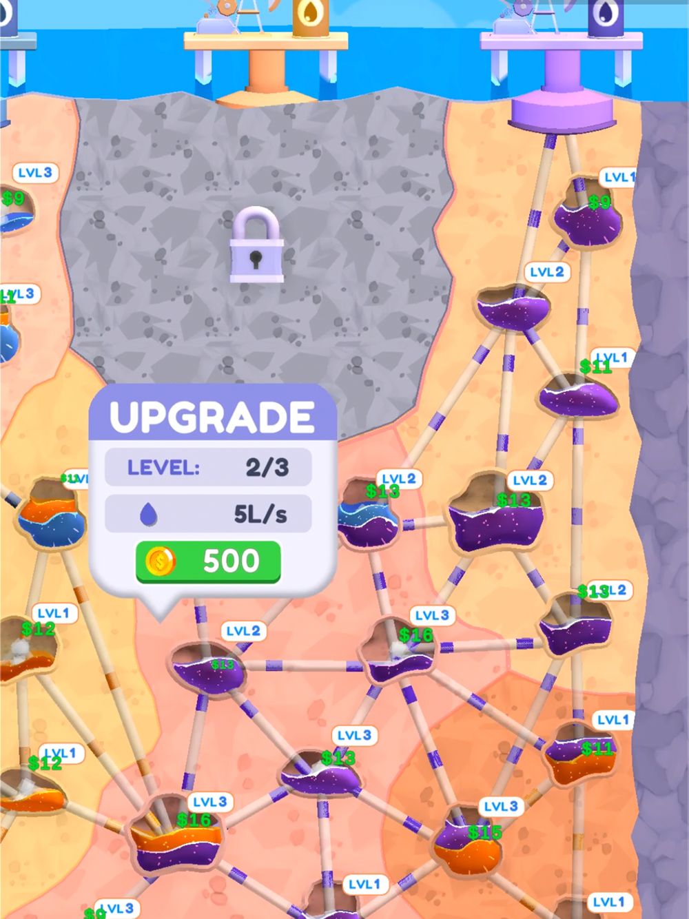 Dig the oil wells in the most oil-rich area and make money! The deeper you dig for oil the more money you make with each level! Get excited to use all tools and techniques to reach the levels and win the game!