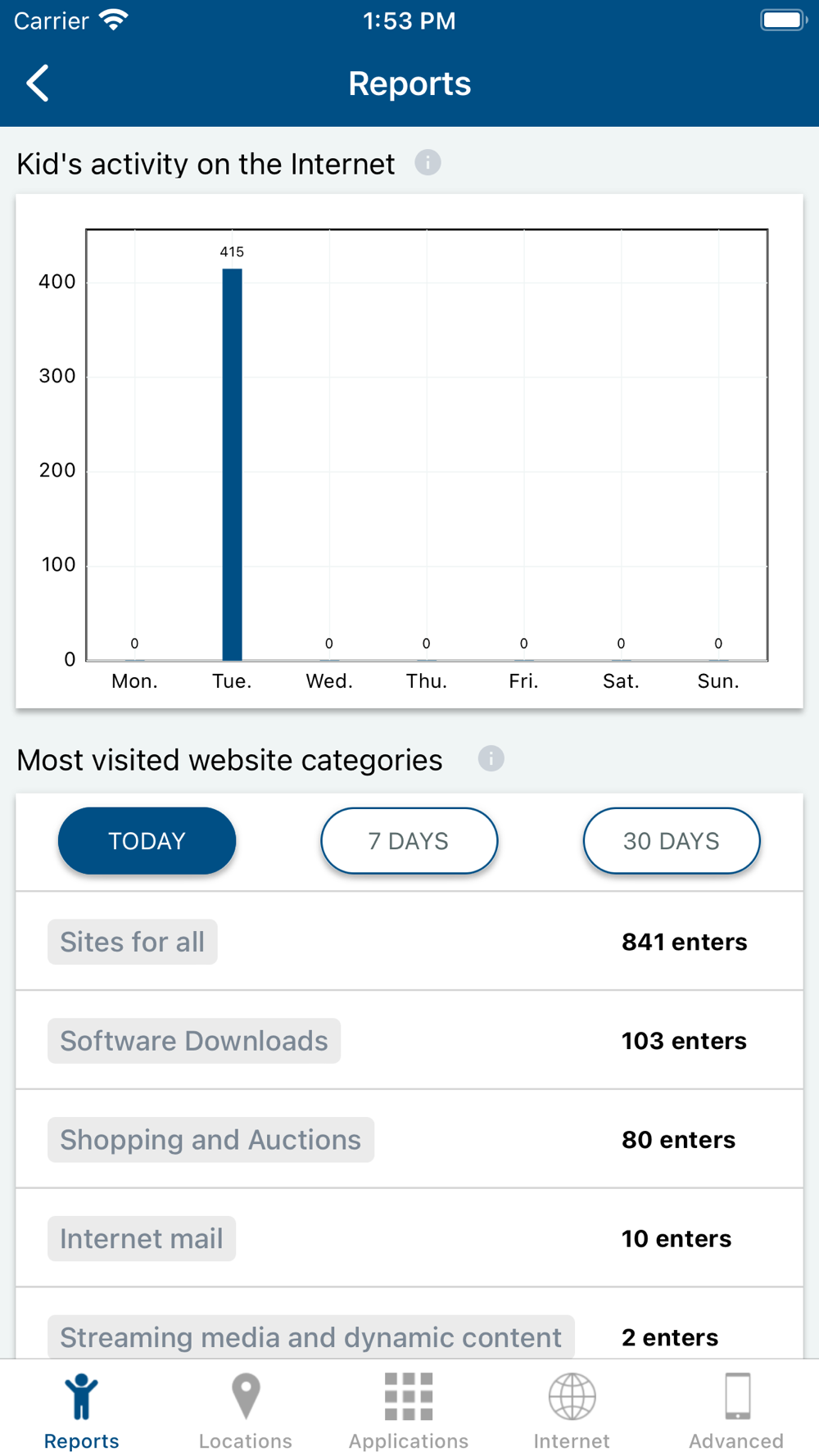 • Monitoring the access time to the Internet and applications on the child's device, as well as sound status or battery level.