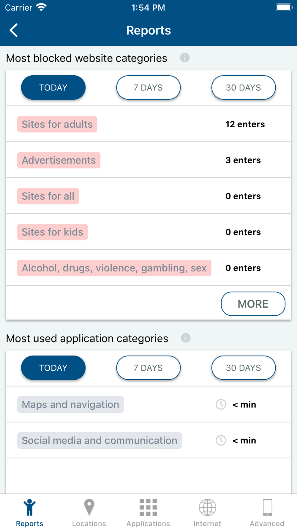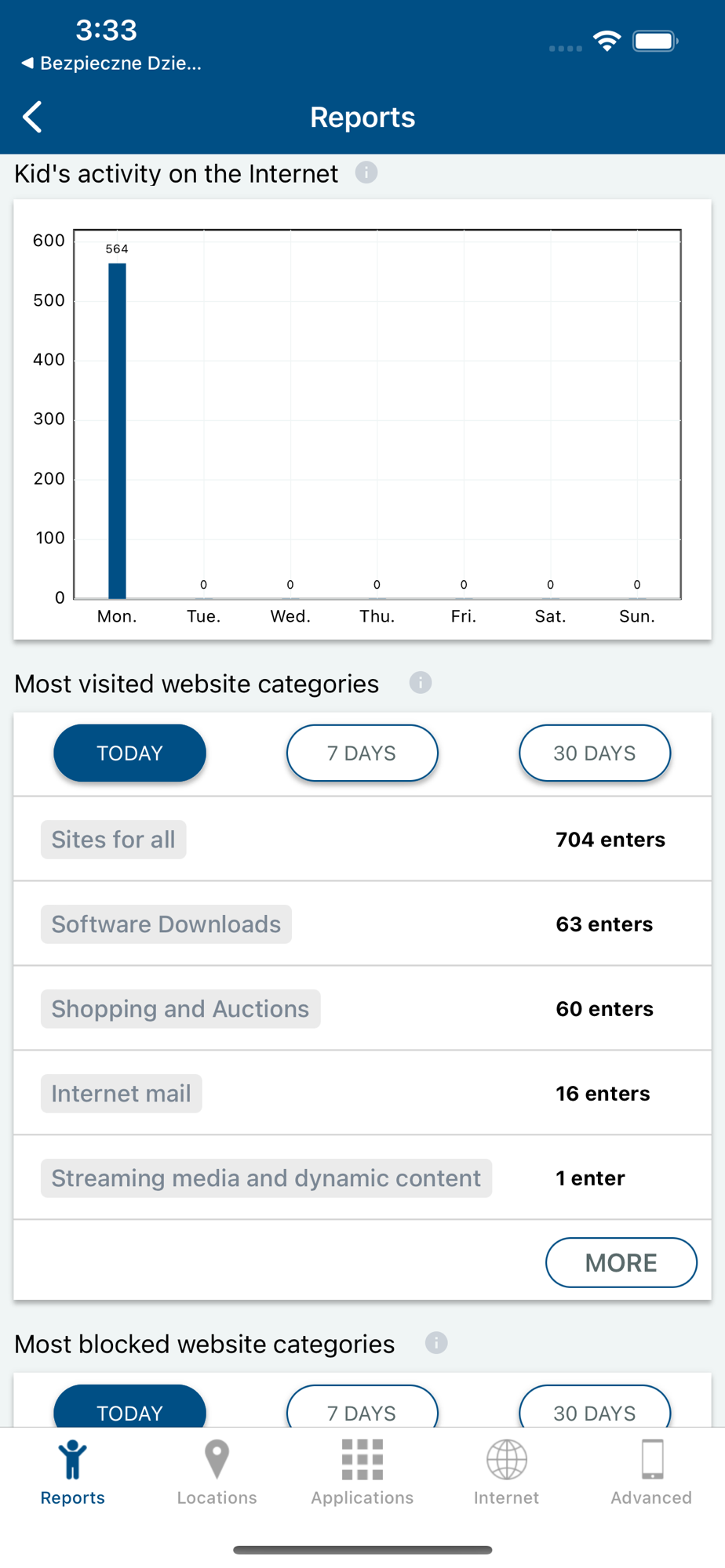 • Blocking websites on the child's device depending on their category.
