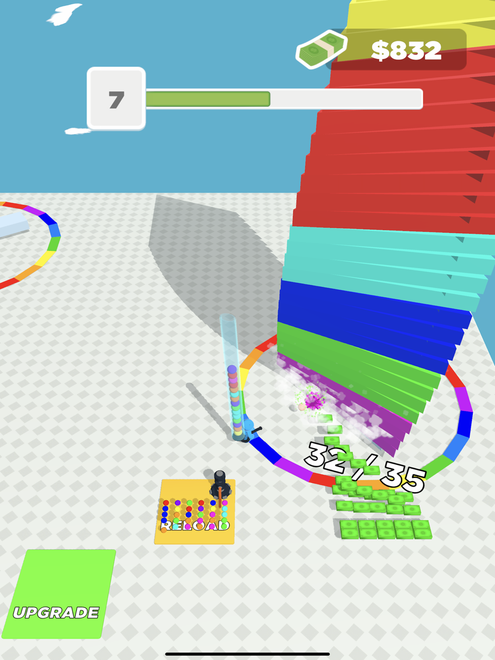 Upgrade for more stacking capacity, quicker fire rate and better income!