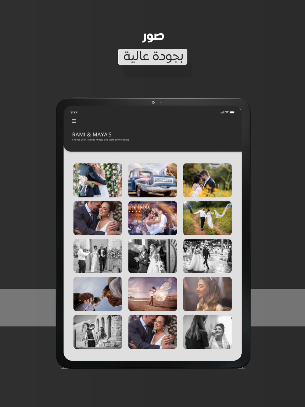 The app contains photos from different events belonging to Aweeha customers and it was designed as a solution to deliver the work (photos) between Aweeha (company) and its customers in an efficient manner. Instead, to deliver all the work on a USB drive, which costs him a lot and is even not environment friendly. So, this App allows the business manager to create usernames and passwords for his customers for free to deliver the work fast and easily in a nature-friendly way. Only customers with a username and password assigned to an event created by the company can access the content of their specific event (engagement, wedding, graduation, circumcise! etc)