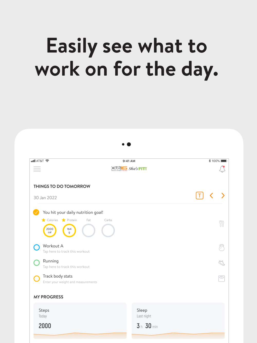 Track your progress and get push notification reminders for scheduled workouts and activities.