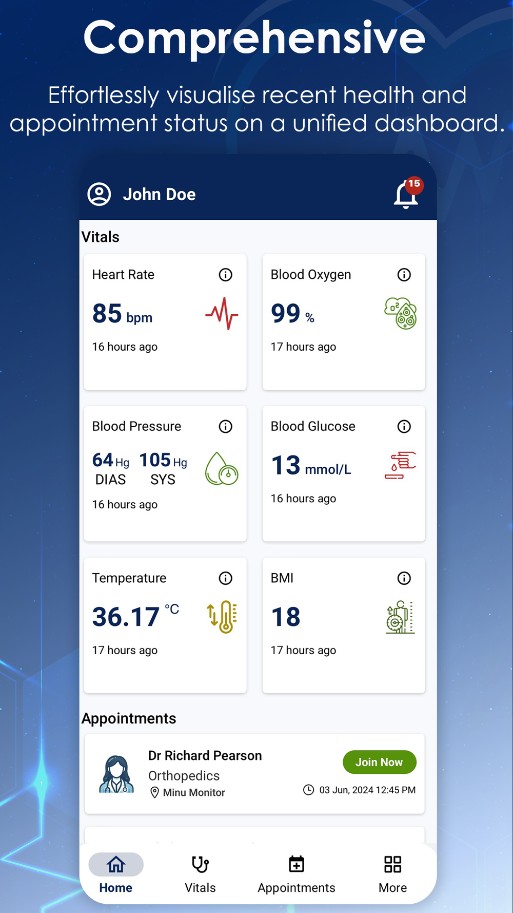 Minu Monitor takes your wellness experience further with integrated appointment scheduling and telemedicine features. Patients can view available doctors' free slots and schedule appointments directly from the app. Engage in real-time communication with healthcare professionals, enhancing your healthcare experience and providing peace of mind.