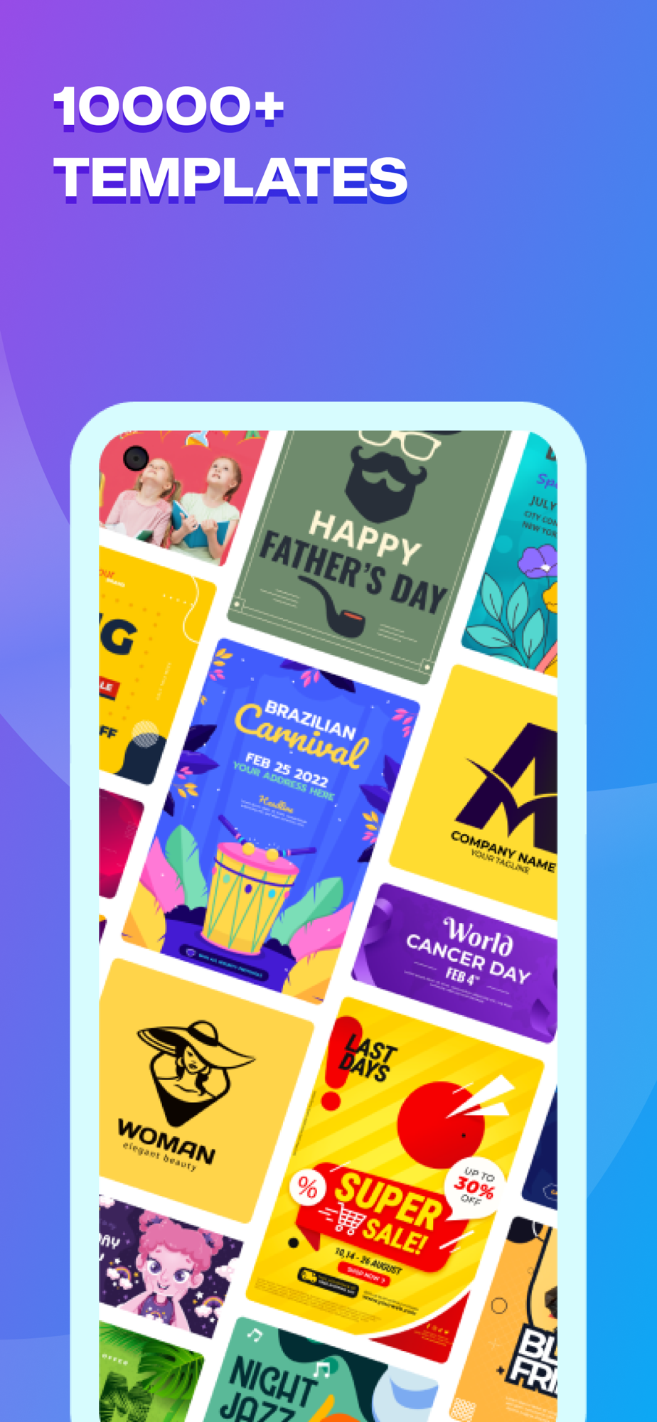 Poster Maker App has a growing library of customizable design templates. We have many categories of templates ready to give you a great start. You can edit the fonts, colors, and styles with just a few taps and create a fantastic design that reflects your personality, style, and brand identity.