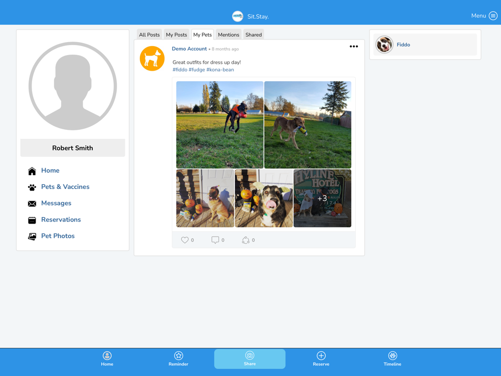 The Sit. Stay. App enables users to make reservations, purchase package credits, see and pay invoices, message with Sit. Stay., see photos of their pets, and more. Employees of Sit. Stay. are able to manage the business and connect with customers. This app is made specifically for the customers and employees of Sit. Stay.