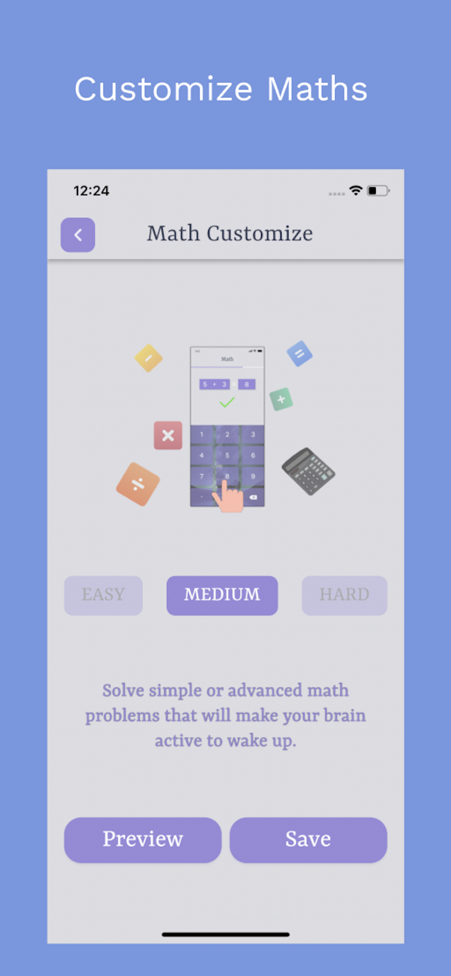■ Math Mission - App has three category math problems. You can choose from Easy, Medium, or Hard math problems that wake you up and make your brain active.
