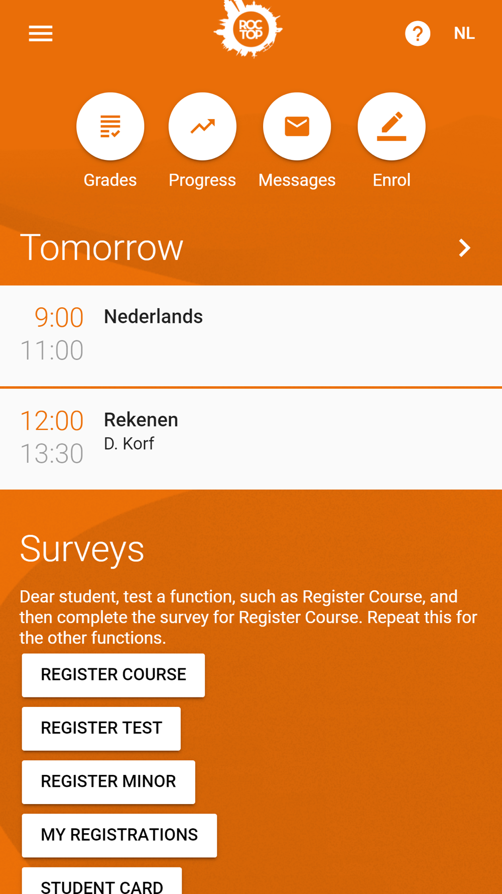 Don't you want to miss anything? You won't, with the OSIRIS app for ROC TOP! With this app on your phone, you'll always have access to the progress of your education. Thanks to the actual schedule you will always know exactly when and where your classes are. Besides that, you will have access to all your student data en you'll be able to get into contact with your mentor.