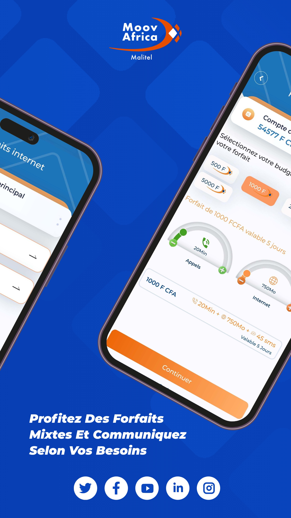 My Moov, c'est aussi votre espace client qui vous permet d'accéder à tout l'univers Moov Africa Malitel de manière pratique et conviviale. Ça vous donne accès aux fonctionnalités suivantes :