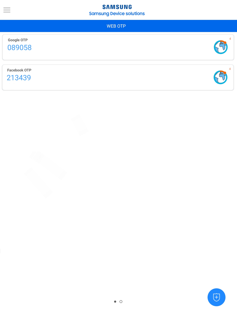 ㆍSamsung DS MFA can generate OTP codes for the website and manage as a list.