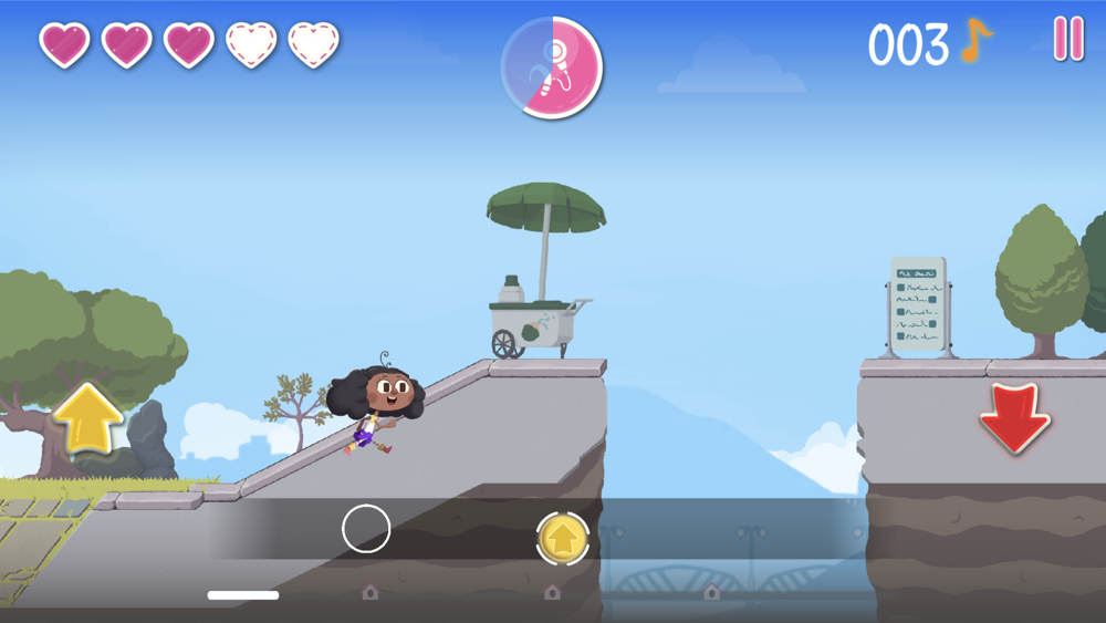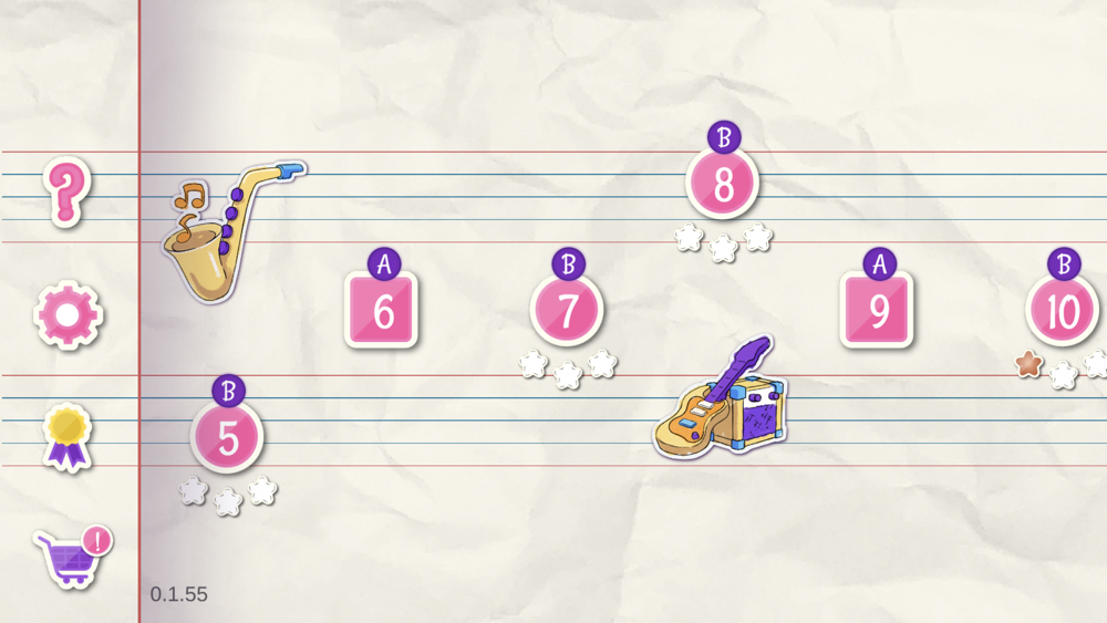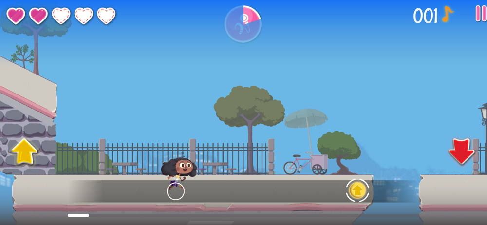 Avoid obstacles by jumping and bending down, collect music notes, buy upgrades, and get all the stars!