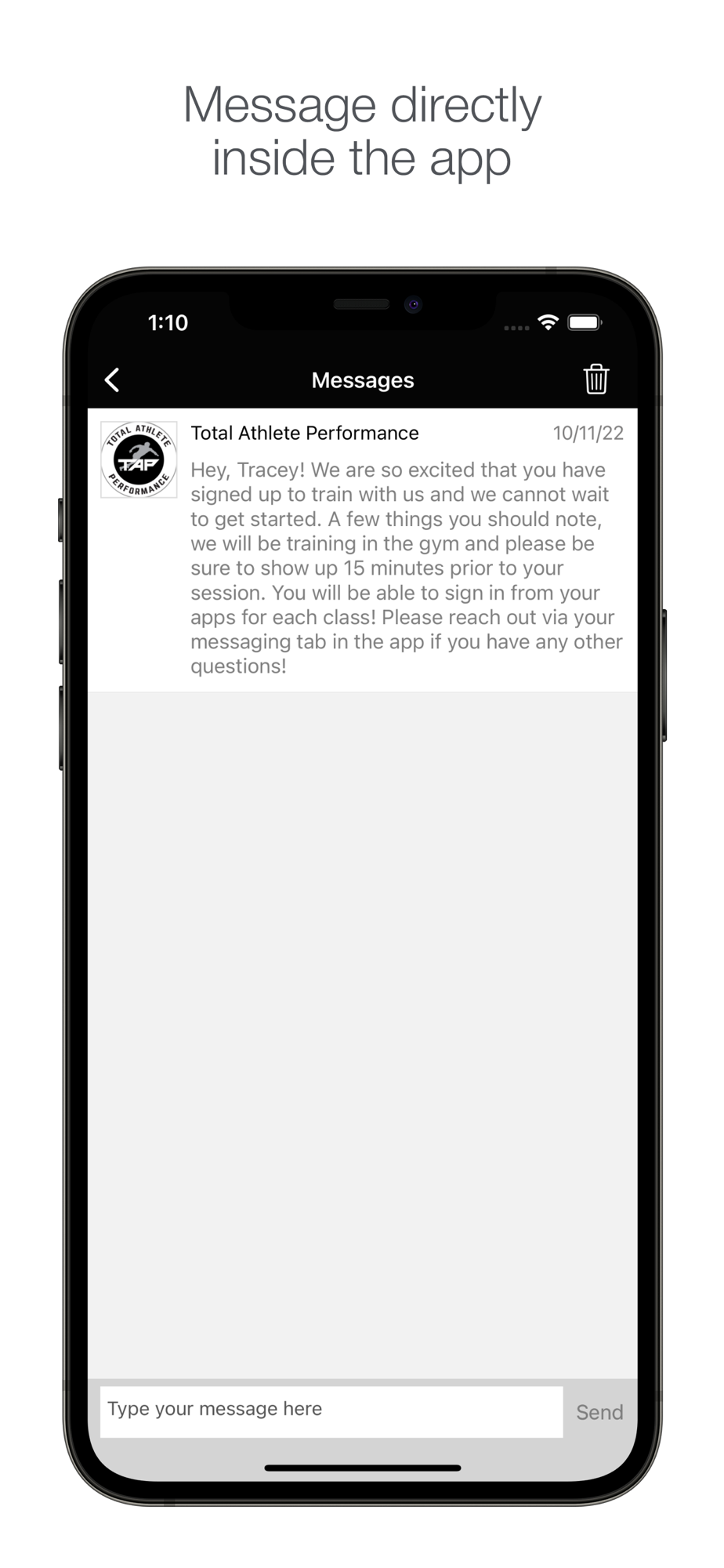 Log your Total Athlete Performance workouts from anywhere with the Total Athlete Performance workout logging app! View your logged workouts, see upcoming scheduled workouts, and book appointments inside the app. Track your progress and get the most out of your Total Athlete Performance workouts!