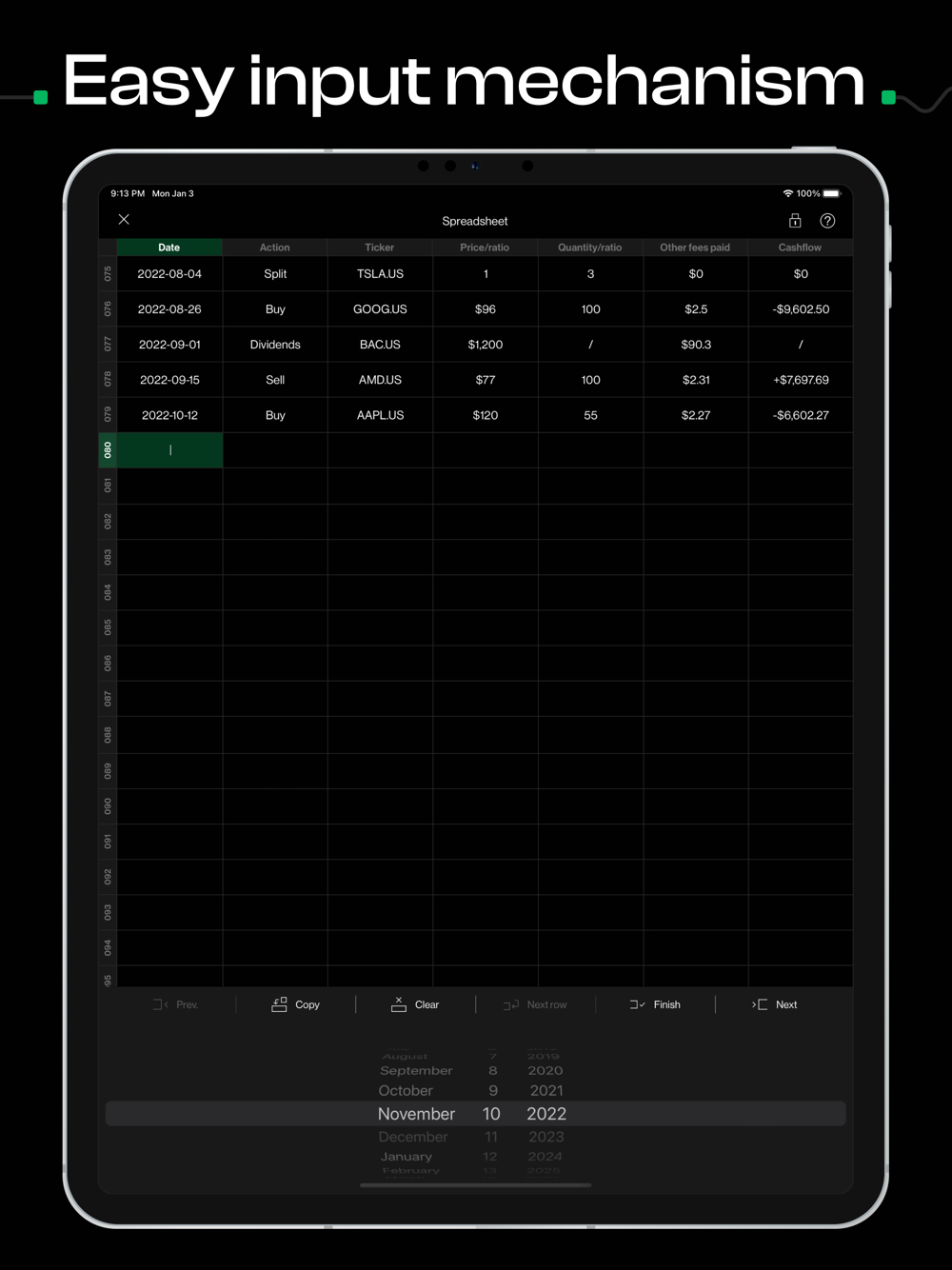 A quantitative approach to improve your portfolio management. It supports csv file import and export to minimize your inputting time. Calculations is done automatically once you update your data. No formulas, no manual setup.