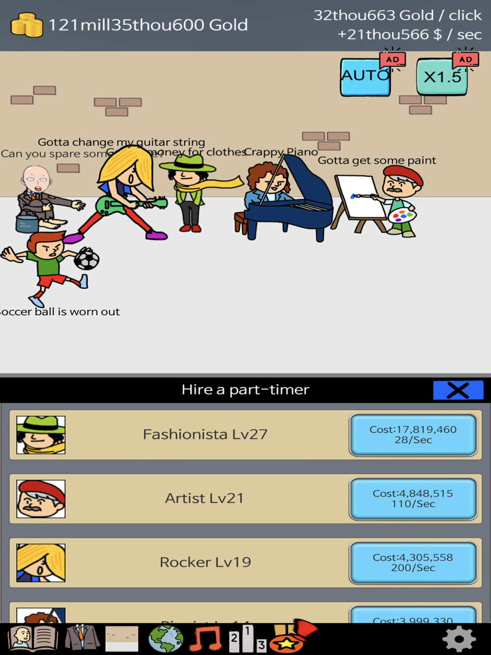 There are also other ways to increase your earnings in Beggar Life. For example, you can partner with street artists, musicians, stylists, soccer even Kings also to grow your network and acquire more profits through their work.