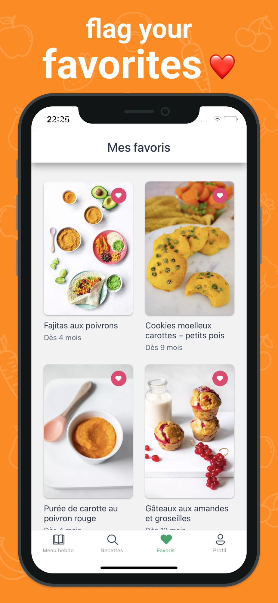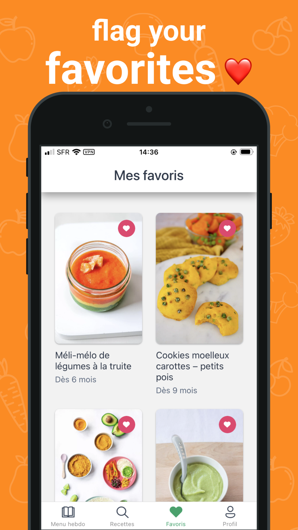 - Sort and filter recipes by age, by type, by diet (without meat, without PLV, without egg etc.).