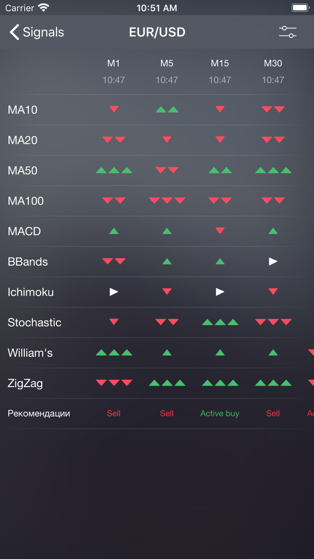 ■ Daily signals in english for 12 currency pairs and 10 trading tools.