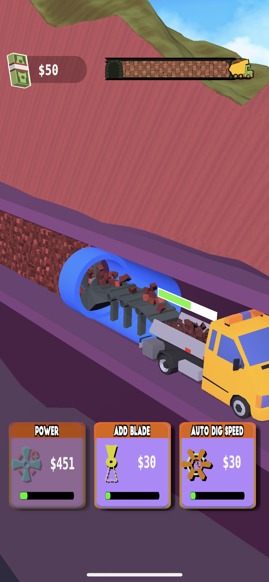 Your company is in charge of digging tunnels. Dig to the other side of the mountain. Upgrade your drill, and truck bed capacity and improve your digging speed and power.