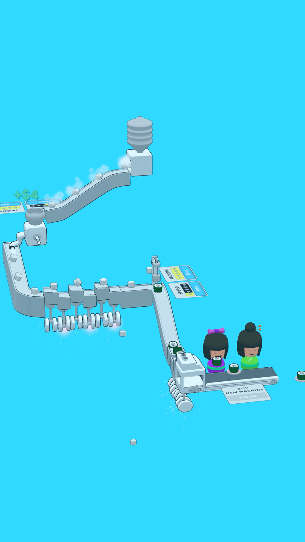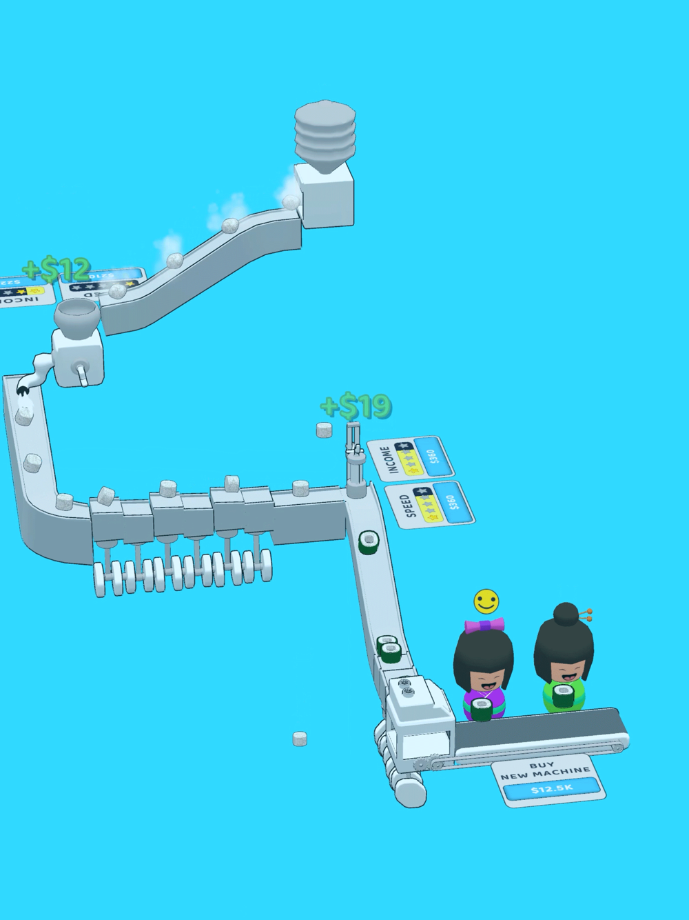 Tap to the machines to accelerate the production, upgrade & unlock new machines, and finally, shovel these delicious rolls the into the mouth of your sushi craving customers! But beware, if you don’t feed them on time, they may devour you instead of the sushis.