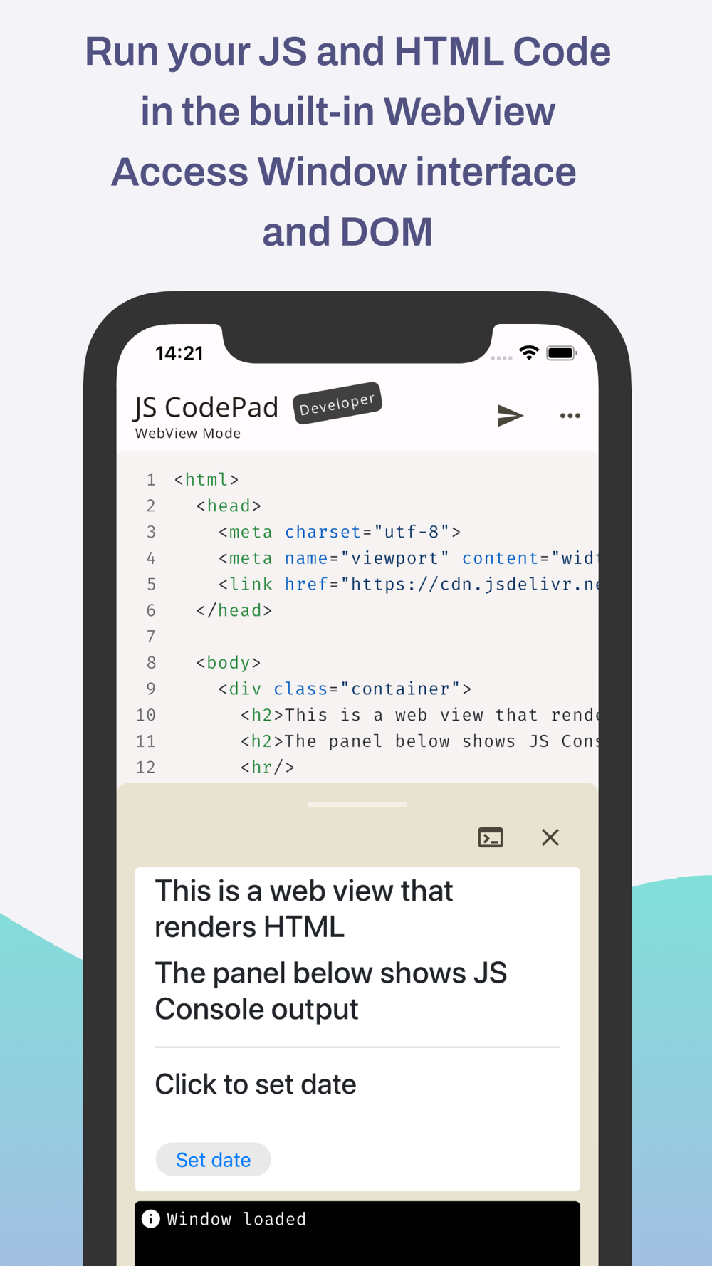 - Write and execute JavaScript code with syntax highlighting and auto-indentation.