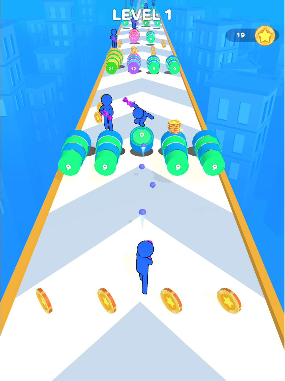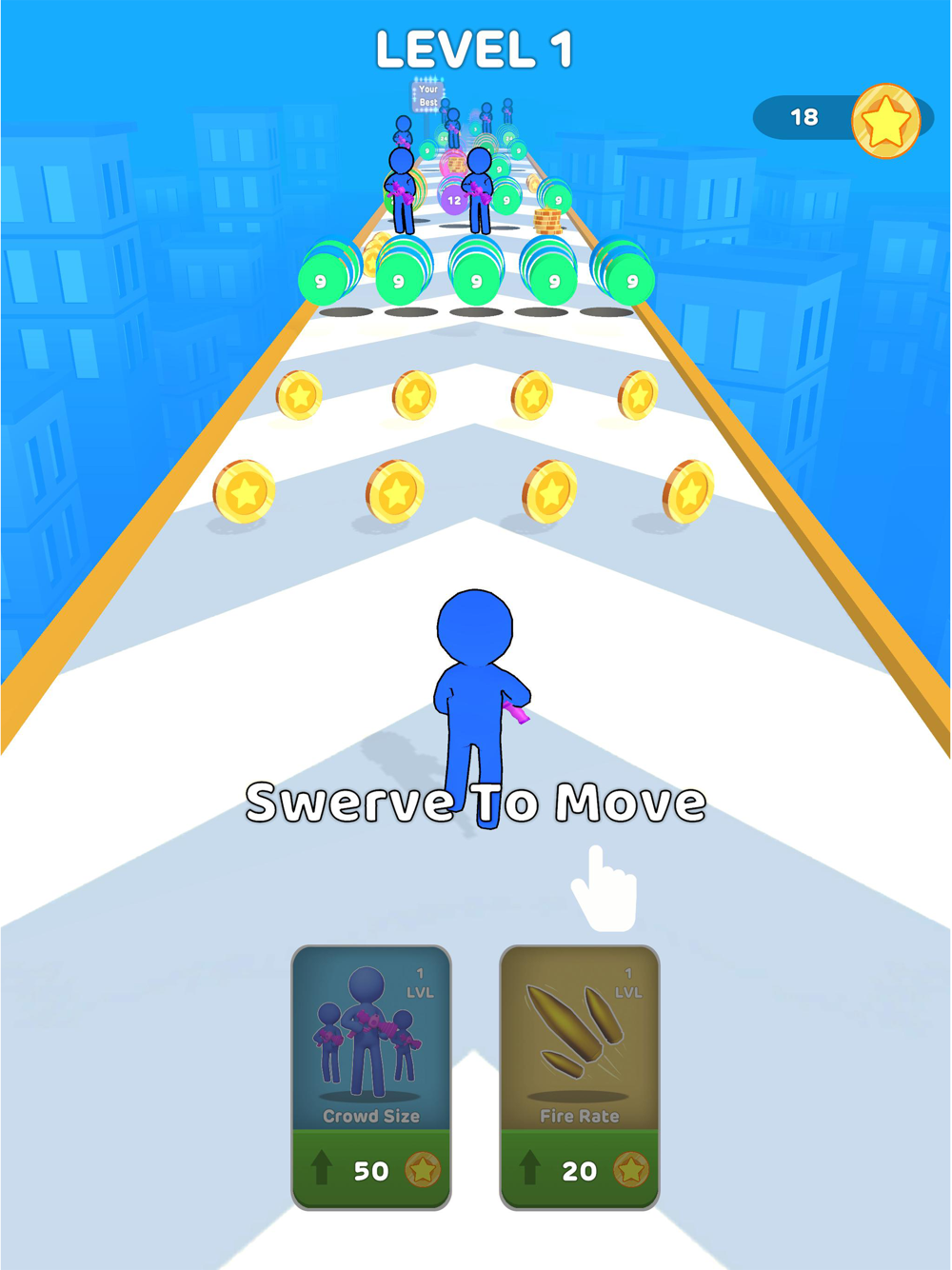 Shoot all layers standing in your way to raise your army! Don’t forget to collect the coins, money is the power, it’ll help to upgrade your weapons! Be fast, because the speed of the leader is the speed of the gang! Now you and your clan are ready kick some asses!