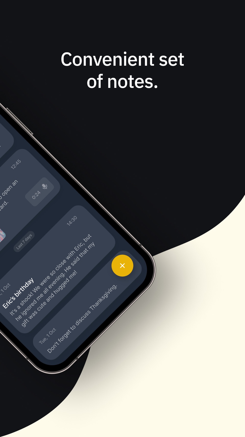 The application, like a close friend, will be with you in the most difficult and joyful moments. And secure login via password or fingerprint and no data collection will forever keep your secrets from everyone, unlike a paper diary.